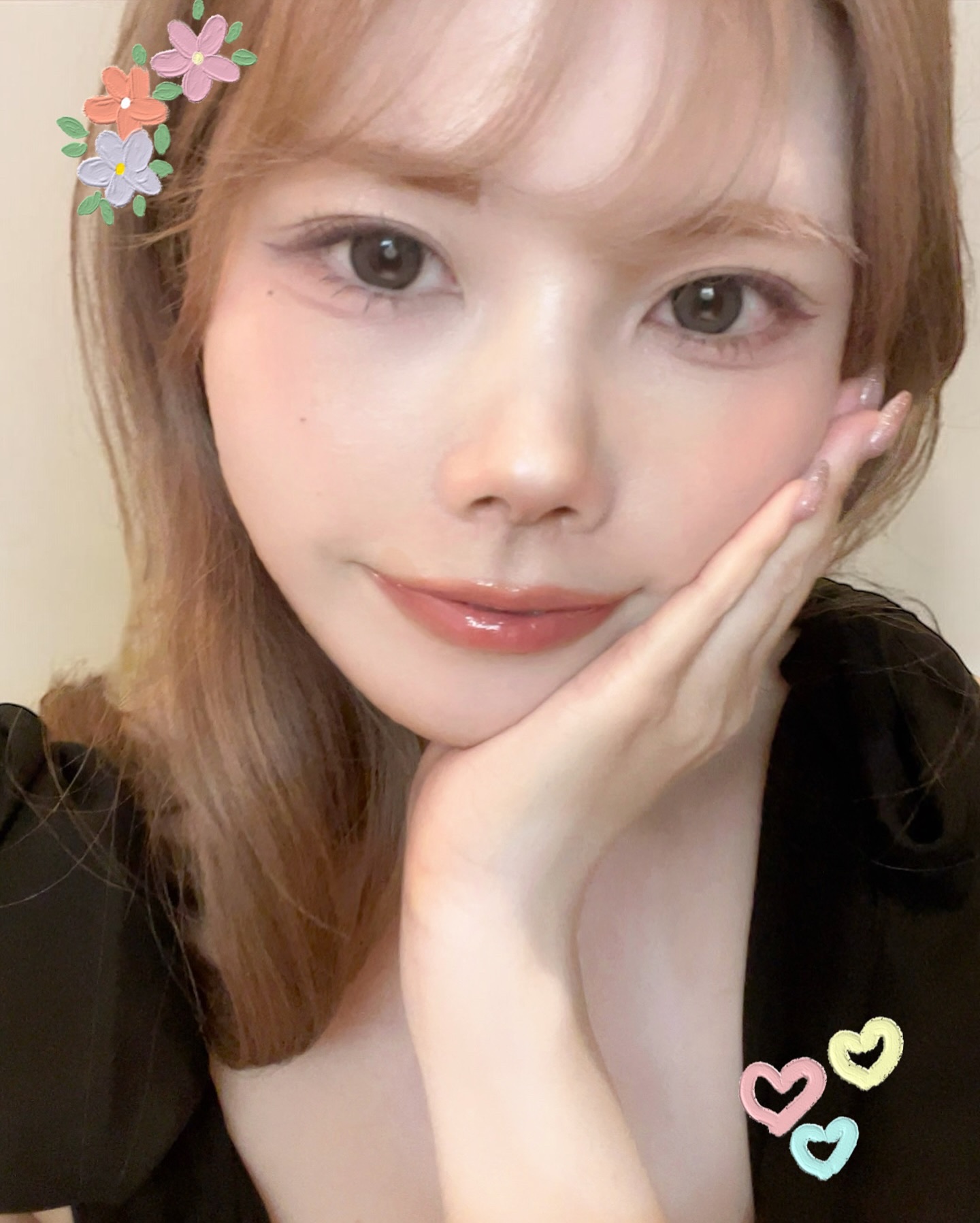 全体的にピンクのメイク(ピーチやコーラルのカラー)で仕上げて、大人っぽさの中に可愛らしさがあるというようなメイクらしい笑 使用したのは画像に載せたものです︎💕︎ UNMIX アイリッドニュアンス ダブル01 ピーチコーラル🍑 これ目もチークにも使える万能カラー✨ マスカラはフーミーのテラコッタピンク✨ ピンクでも盛れる可愛いカラー♥️✨ アイライナーはキャンメイクのクリィミータッチライナー09でした💦 部分的にさらにラメを足したいなあと思ってシピシピを黒目から地雷盛りラインの下までにON🍑 リップは下にアルミュージュを土台にして、グラデーションに泥リップ ツヤ足しに、イブサンローランを( ¯ᵕ¯ )♡