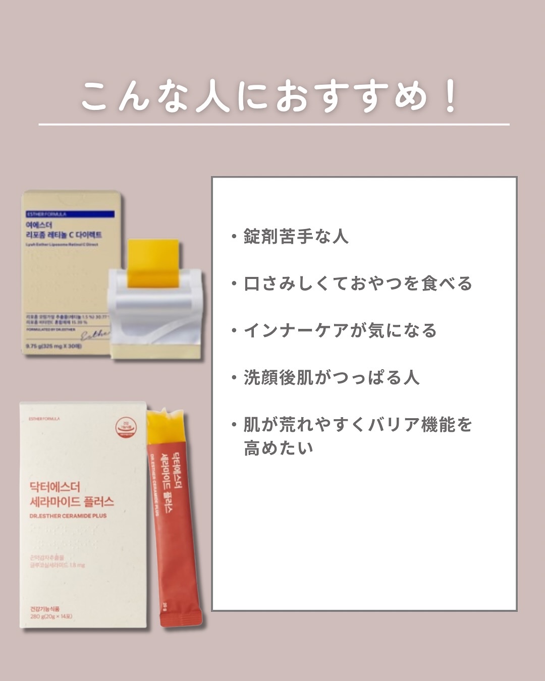 もっと見るおすすめアイテムESTHER FORMULA×美容サプリメント