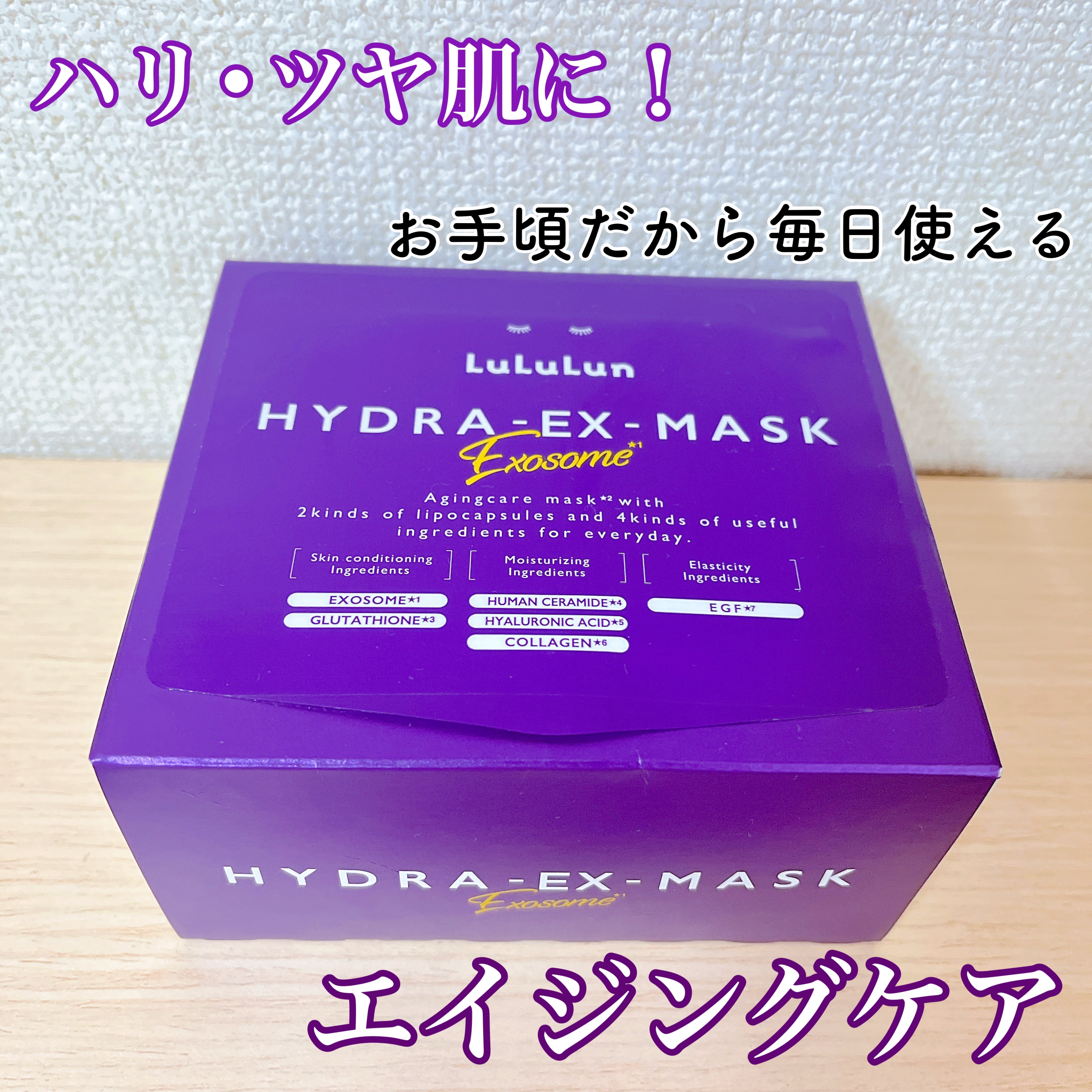 LuLuLunルルルンハイドラEXマスク28枚入/¥2,640(税込)ルルルンハイドラシリーズ💟先端再生テクノロジーにインスパイアされた、デイリーエイジングケア*マスク✨エクソソーム➡整肌成分ヒト脂肪由来間葉系細胞エクソソームグルタチオン➡弾...