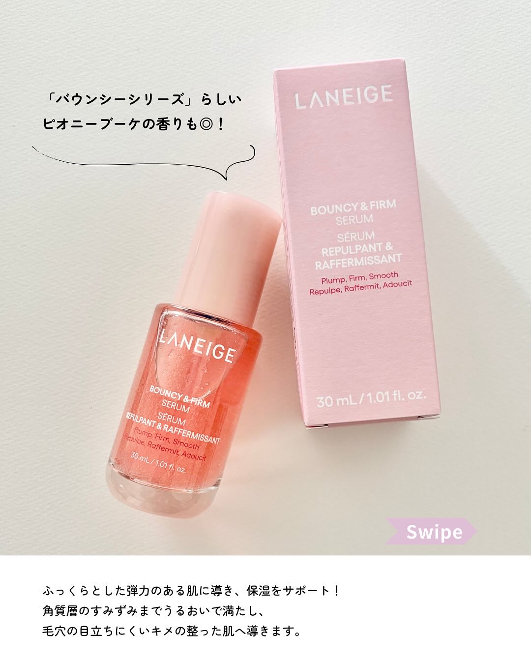 ◆LANEIGE(ラネージュ)/バウンシーセラム2025年4月19日に発売された新商品🩷バウンシーシリーズ共通のピオニー&コラーゲンコンプレックス™️*1配合。24,000個のラネージュ独自のビタミンオイルカプセル*2や4種のペプチド*3配合...