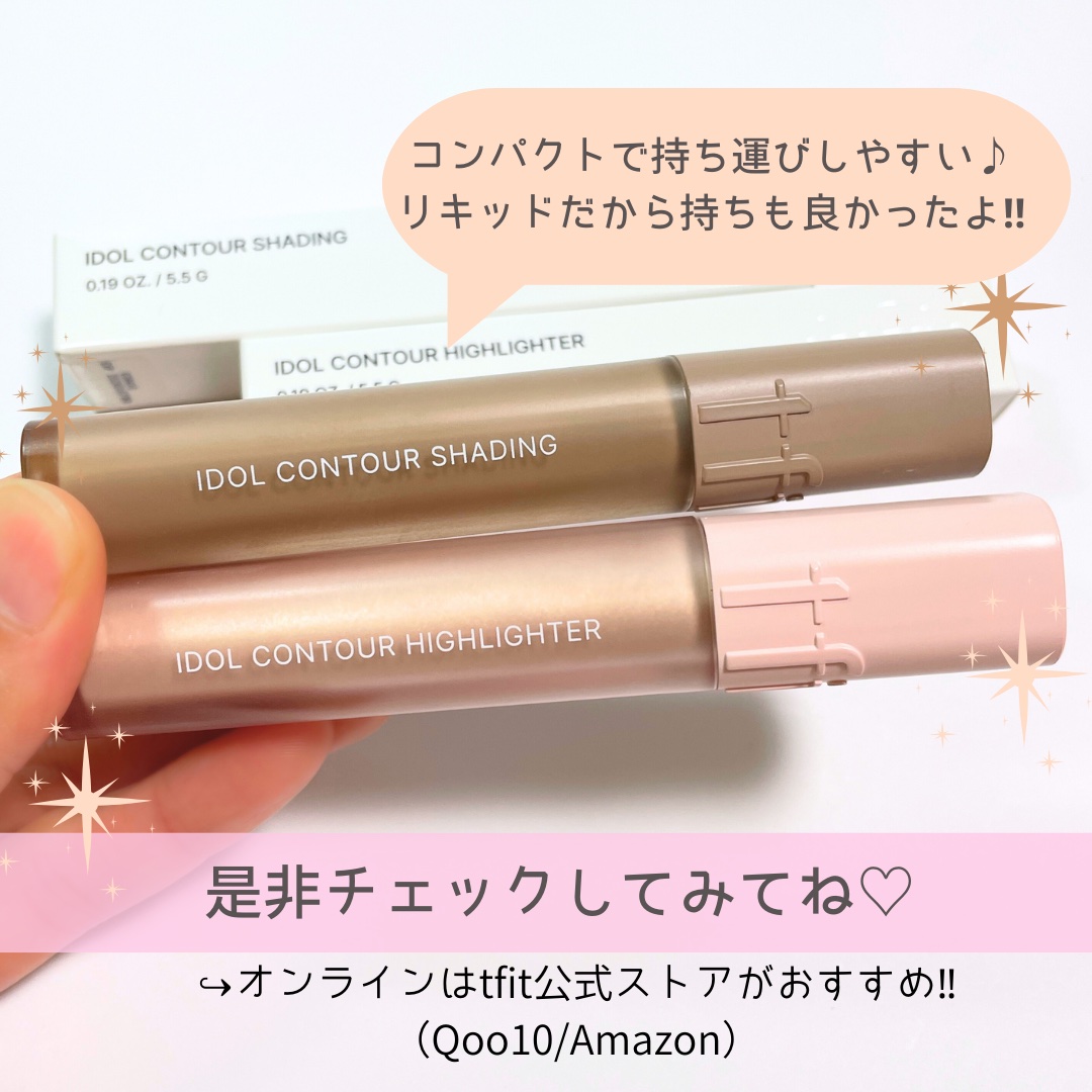 コンシーラーやパウダーなどで人気のブランドtfitのおすすめ紹介です☺️アイドルコントゥアハイライターアイドルコントゥアシェーディングおすすめポイント①携帯できるサイズ♡ポーチに入れやすいサイズのシェーディング&ハイライターで旅行やお出かけの...