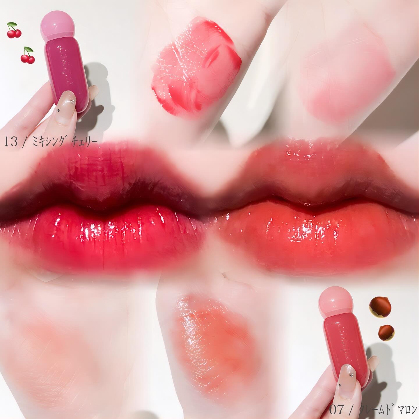 - 【夏新作2カラー登場!】 まるで果実のしずくがそのままリップになったような、みずみずしさと繊細なツヤを詰め込んだ「ジュージーデューイグロウティント」 夏新作で登場する新色「ベリーハート」、「タロミルク」は、透明感とふんわりとした色づきを徹底的にこだわって、何度もテストを重ねて生まれた特別なクールトーンカラー。 ひと塗りで唇をうるおし、重ねても重くならず、果実たっぷり!光をまとうような仕上がりに! - 蜂蜜に漬けた果物のように、うるちゅるふっくらとした果汁粘膜「ジューシーデュイグロウティント」 ミニだけの限定4色 15 ローストロベリー 16 ハミングピンク 17 ロージーシナモン 18 モーブディープス ♡唇に触れた途端、ぷるんと色っぽい果汁コーティング 果汁コーティングがじゅわっと唇に広がり、透明に輝くうるちゅる感を!蜂蜜に漬けた果物のようにぷるんぷるんとした唇を演出するグロウティント ♡イエベ、ブルべに合わせた多彩なカラーバリエーション 14色のカラーバリエーションで単独または、2色レイヤーリングして様々なリップメイクを演出 ♡ティント+リップグロスを一気に塗る効果! ティントの鮮やかな発色とリップグロスのうるうる透明ツヤ感が何度塗り重ねてもべたつかせず、唇にピタッと密着! 2025年11月1日(土)より、Qoo10公式ショップおよび東京フラッグシップストアにて発売予定