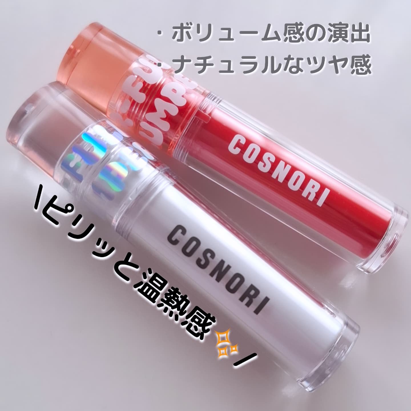 COSNORI/コスノリ◻︎ウォーターフルリッププランパー 01CLEAR 03PURITYCORALプランプ効果と保湿感で、ヒアルロン酸を注入したようなぷっくりとしたボリューム感*のある唇を演出👄´-CheckPoint☝🏻①水分で膨らませ...