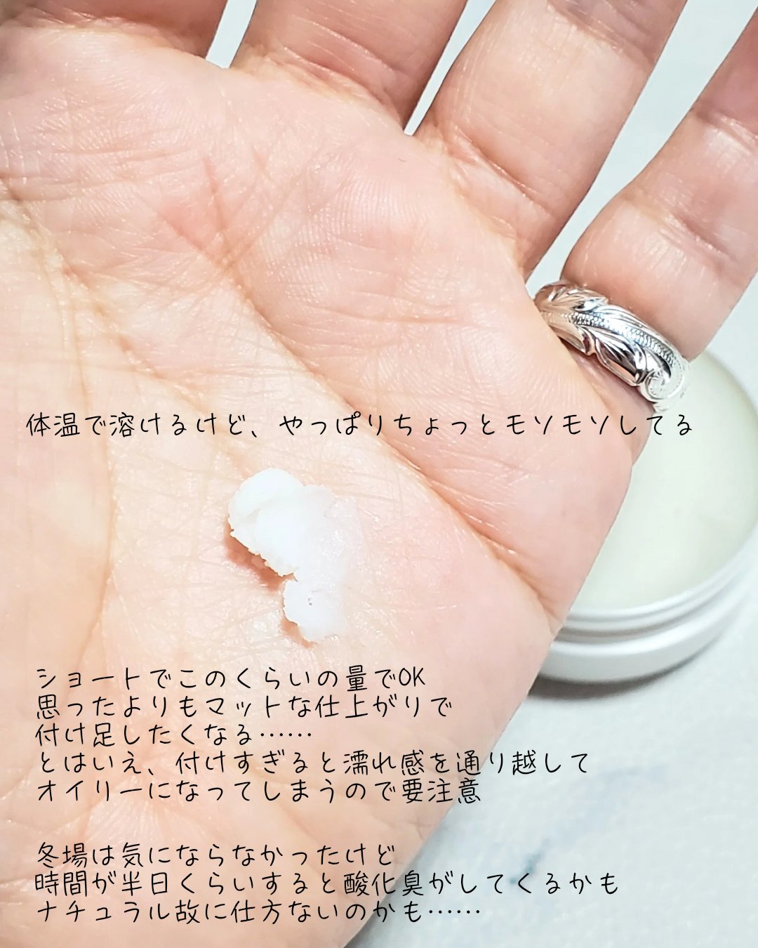 ほのかに柑橘系の香りがして、テクスチャも固めですが、体温で自然と溶けてくれるので少量撫でるように取って、軽く前髪や毛先などパサつきを抑えてるお直しするのにオススメです 持ち運び便利なので、小さいバックにも入るし旅先にも持っていけて助かります〜 天然由来原料のみで作られたヘアバームなのでその点も安心です✨️