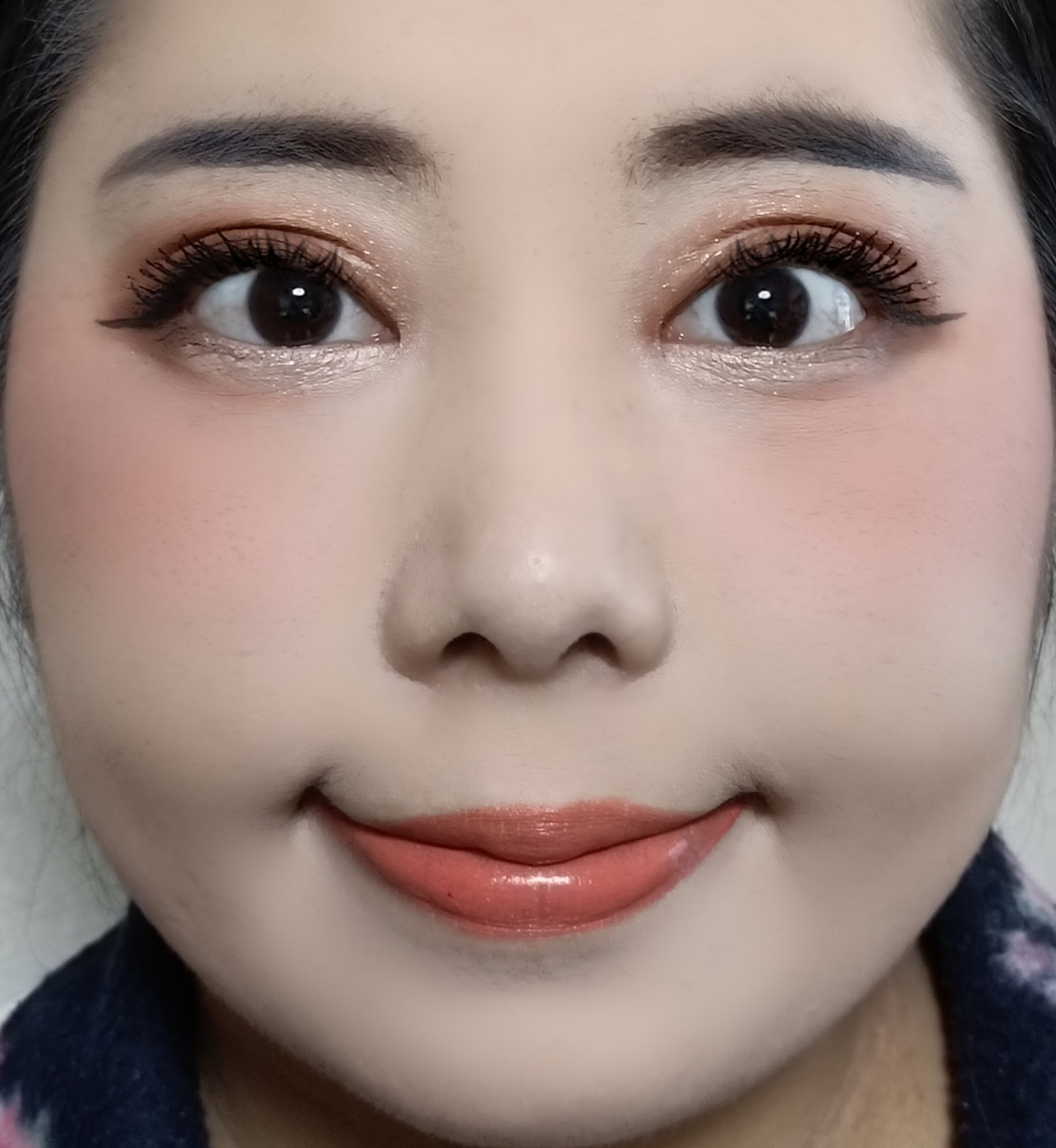 アイシャドウパレットは、UR GLAM アイシャドウパレットを、使用しました。 リップは、M・A・C リップスティック ピーチストックを、唇全体にまんべんなく塗ります。