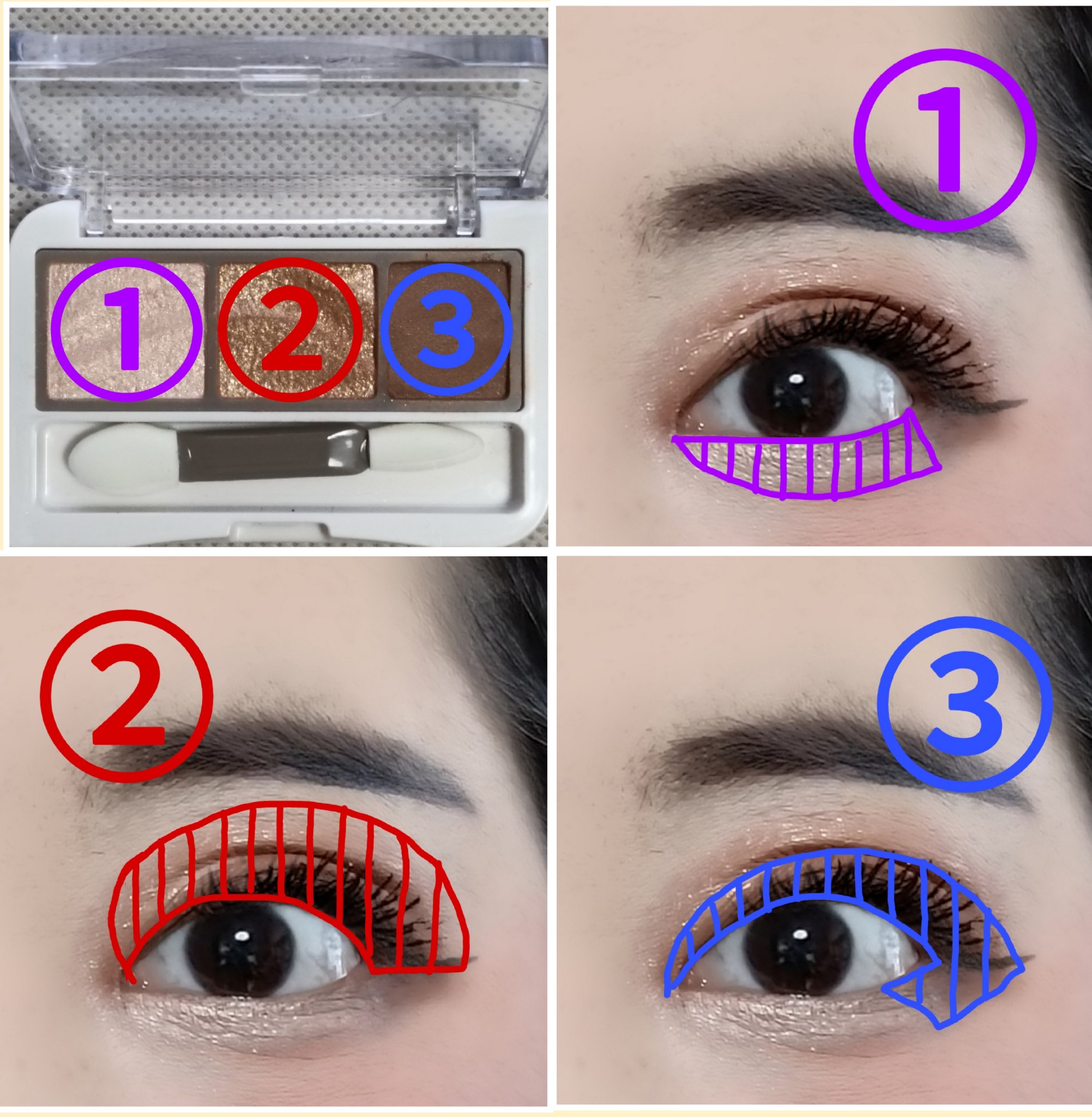 アイシャドウパレットは、URGLAM UR GLAMBLOOMING EYE COLOR PALETTE 02を、使用しました。 マスカラは、MAYBELLINE NEW YORK コロッサルボリュームエクスプレスを、まつ毛全体にまんべんなく塗ります。 リップは、wet 'n' wild MegaLast Lip Colorを、唇全体にまんべんなく塗ります。