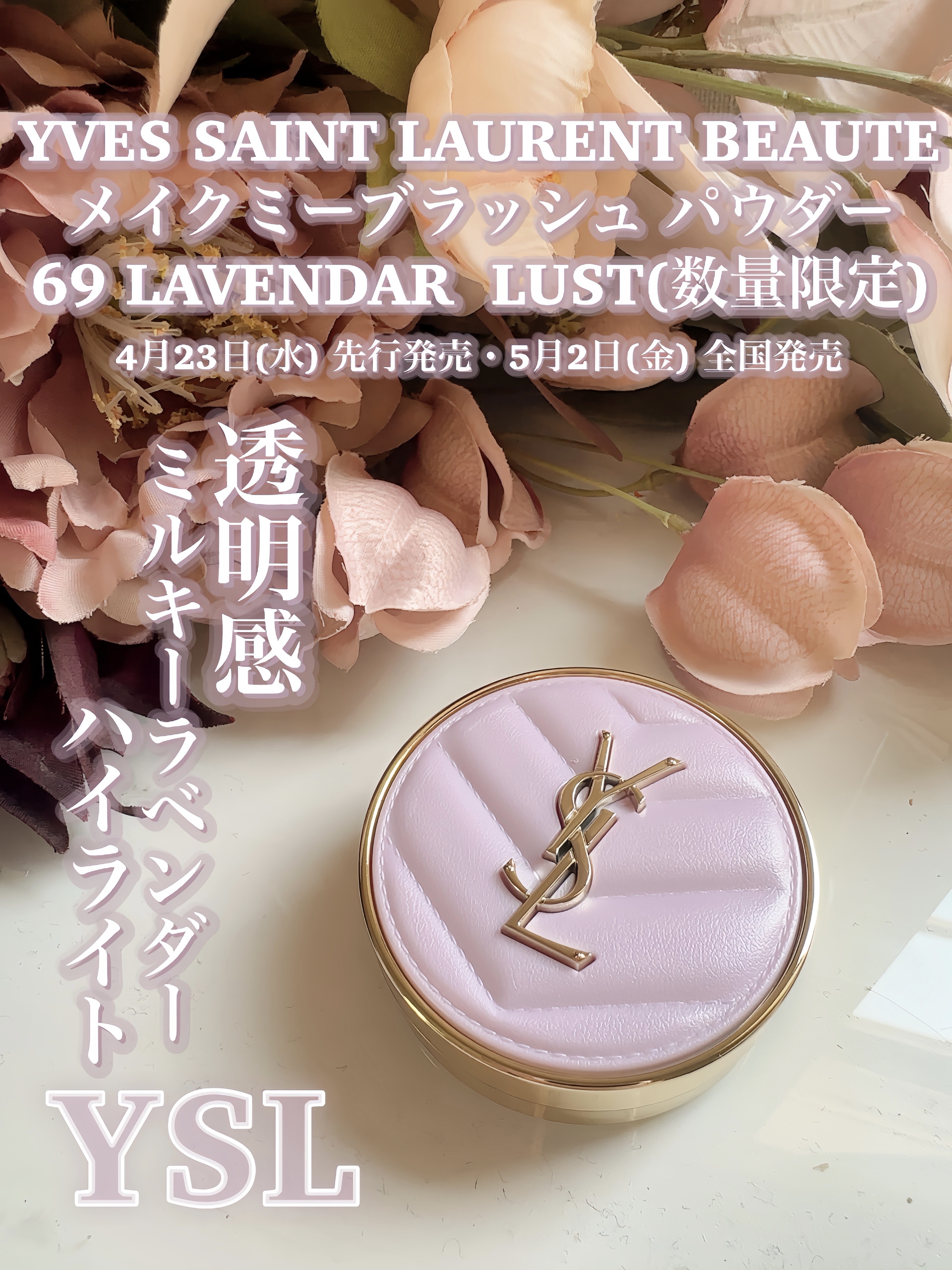 【使った商品】YVESSAINTLAURENTBEAUTEYSLメイクミーブラッシュパウダー69LAVENDARLUST【商品の特徴】ヴェールのようなふんわり発色が一日中続くパウダーチーク69LAVENDARLUSTミルキーラベンダー✼•...