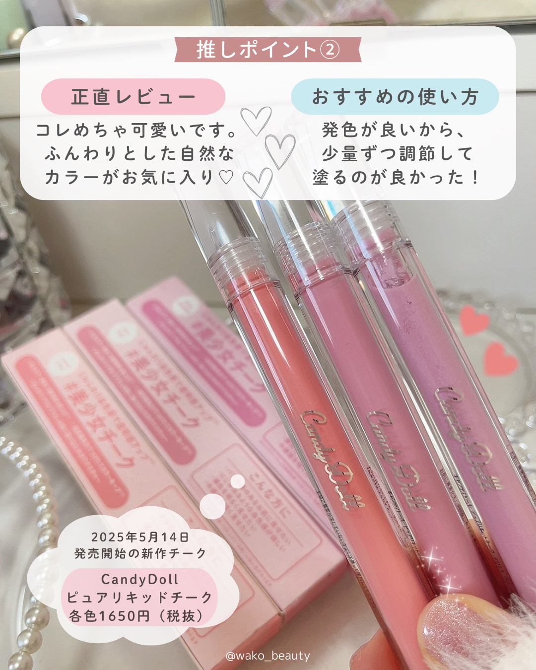 白みチークで余白を埋めて"中顔面短縮効果"を狙える🩷キャンディドールのふわふわリキッドチーク🌸キャンディドールさまから頂きました◎CandyDollピュアリキッドチーク01ヴィーナスラベンダー02アイドルピンク03チャーミーコーラルキャンディ...