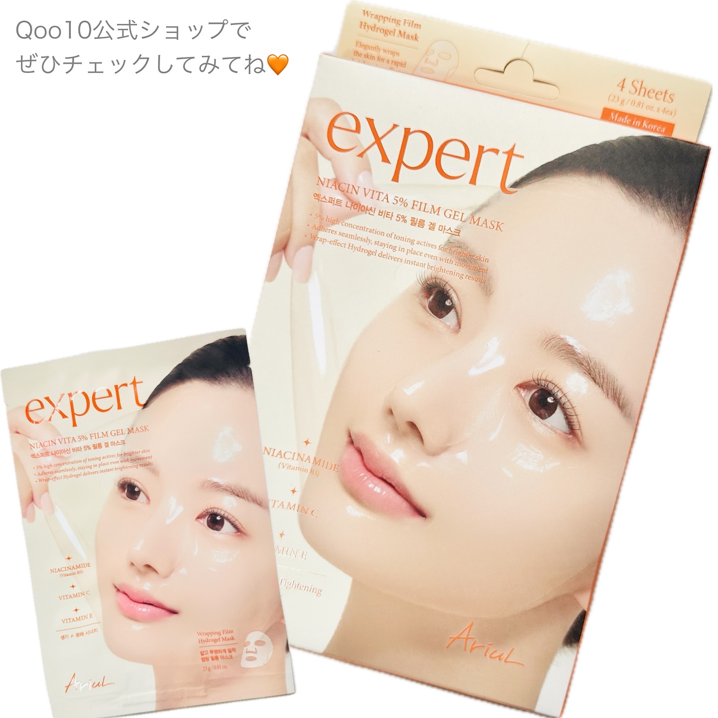 #PRAriul@ariul_jpエキスパートナイアシンビタ5%フィルムゲルマスク新感覚!厚さわずか0.3mmの超密着フィルムゲルマスク✨️ぴたっと密着して動いてもズレにくい🙆♀️使用後はしっとりするけどベタつきは気にならなかったよ☺️肌の...