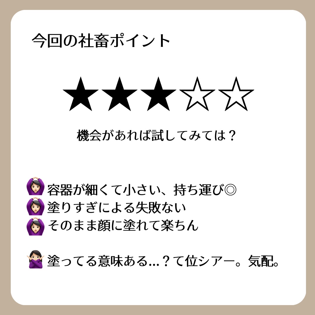 | ハイライト・シェーディングランキング第54位 | 完全マットで、粒子がすごく細かくてピタッと密着する感があるのに伸びがいいのでめちゃくちゃ使いやすい! | 詳細を見る | |