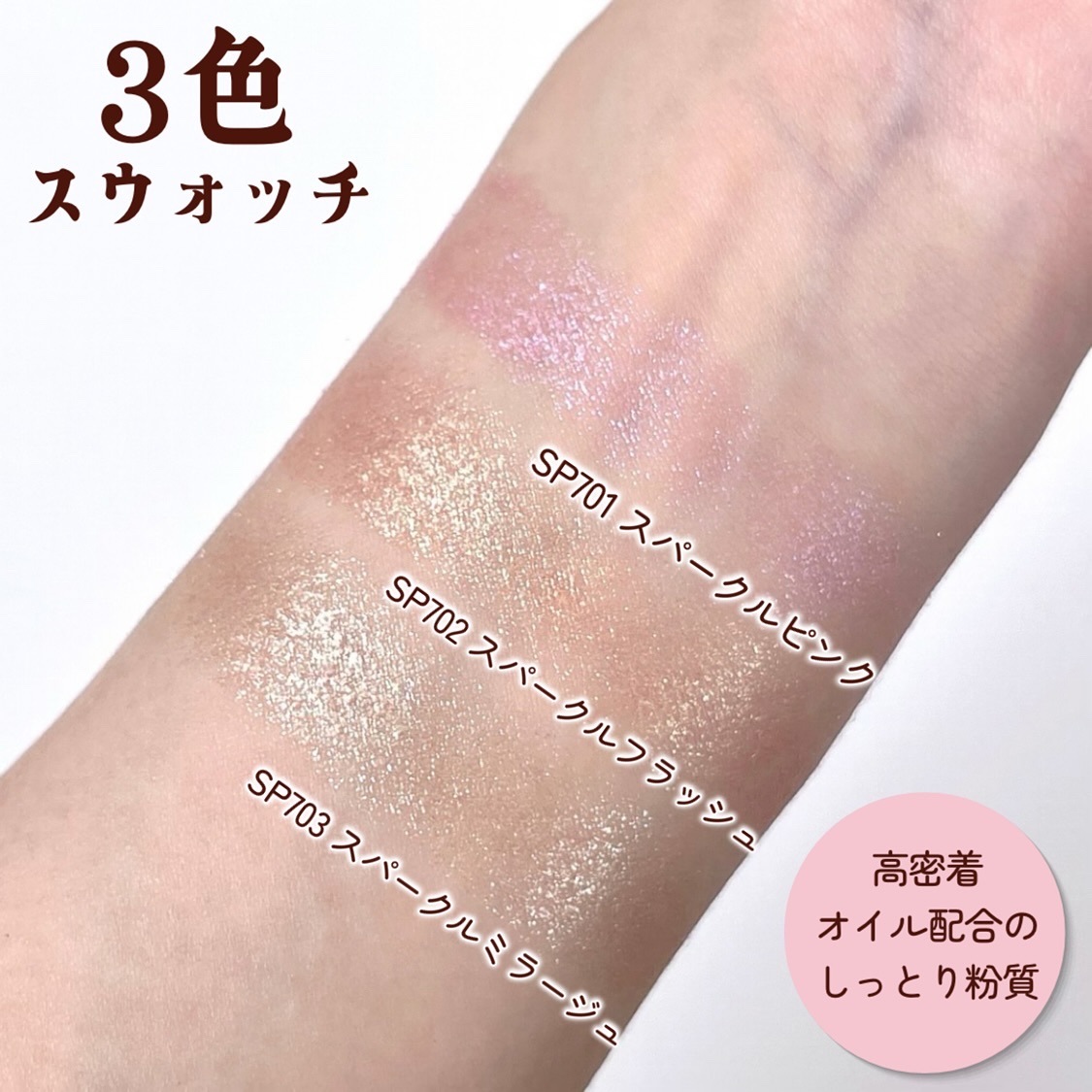 - <068 レッドブラウン> タルク、リンゴ酸ジイソステアリル、ジメチコン、シリカ、ジエチルヘキサン酸ネオペンチルグリコール、ワセリン、ミリスチン酸亜鉛、ジステアリン酸Al、セスキイソステアリン酸ソルビタン、トコフェロール、クロルフェネシン、デヒドロ酢酸Na、(+/-)グンジョウ、マイカ、酸化チタン、酸化鉄、水酸化Al、硫酸Ba <069 ピンクベージュ> タルク、リンゴ酸ジイソステアリル、ジメチコン、ジエチルヘキサン酸ネオペンチルグリコール、ヘキサ(ヒドロキシステアリン酸/ステアリン酸/ロジン酸)ジペンタエリスリチル、シリカ、ミリスチン酸亜鉛、セスキイソステアリン酸ソルビタン、トコフェロール、クロルフェネシン、デヒドロ酢酸Na、(+/-)グンジョウ、マイカ、酸化チタン、酸化鉄、硫酸Ba、酸化スズ、ホウケイ酸(Ca/Al)、赤226 <070【マット】フォグピンク> タルク、マイカ、合成フルオロフロゴパイト、リンゴ酸ジイソステアリル、スクワラン、ワセリン、ジメチコン、シリカ、セスキイソステアリン酸ソルビタン、トコフェロール、エチルパラベン、メチルパラベン、デヒドロ酢酸Na、(+/-)カオリン、グンジョウ、酸化チタン、酸化鉄、水酸化Al、赤226 <071【グリッター】トープブラウン> タルク、マイカ、リンゴ酸ジイソステアリル、合成フルオロフロゴパイト、スクワラン、ジメチコン、ワセリン、セスキイソステアリン酸ソルビタン、トコフェロール、エチルパラベン、メチルパラベン、デヒドロ酢酸Na、(+/-)カオリン、グンジョウ、酸化チタン、酸化鉄、酸化スズ、ホウケイ酸(Ca/Al)、赤226 <M117 ピュアミルク(限定)> タルク、合成フルオロフロゴパイト、ステアリン酸エチルヘキシル、シリカ、窒化ホウ素、ジメチコン、リンゴ酸ジイソステアリル、ヘキサ(ヒドロキシステアリン酸/ステアリン酸/ロジン酸)ジペンタエリスリチル、カルナウバロウ、イソステアリン酸ソルビタン、トコフェロール、クロルフェネシン、デヒドロ酢酸Na、(+/-)グンジョウ、マイカ、酸化チタン、酸化鉄、水酸化Al、赤226 <M118 アイボリー(限定)> タルク、合成フルオロフロゴパイト、ステアリン酸エチルヘキシル、シリカ、窒化ホウ素、ジメチコン、リンゴ酸ジイソステアリル、ヘキサ(ヒドロキシステアリン酸/ステアリン酸/ロジン酸)ジペンタエリスリチル、カルナウバロウ、イソステアリン酸ソルビタン、トコフェロール、クロルフェネシン、デヒドロ酢酸Na、(+/-)グンジョウ、マイカ、酸化チタン、酸化鉄、水酸化Al、赤226 <M119 ペールライラック(限定)> タルク、合成フルオロフロゴパイト、ステアリン酸エチルヘキシル、シリカ、窒化ホウ素、ジメチコン、リンゴ酸ジイソステアリル、ヘキサ(ヒドロキシステアリン酸/ステアリン酸/ロジン酸)ジペンタエリスリチル、カルナウバロウ、イソステアリン酸ソルビタン、トコフェロール、クロルフェネシン、デヒドロ酢酸Na、(+/-)グンジョウ、マイカ、酸化チタン、酸化鉄、水酸化Al、赤226 <M120 パウダリーピンク(限定)> タルク、合成フルオロフロゴパイト、ステアリン酸エチルヘキシル、シリカ、窒化ホウ素、ジメチコン、リンゴ酸ジイソステアリル、ヘキサ(ヒドロキシステアリン酸/ステアリン酸/ロジン酸)ジペンタエリスリチル、カルナウバロウ、イソステアリン酸ソルビタン、トコフェロール、クロルフェネシン、デヒドロ酢酸Na、(+/-)グンジョウ、マイカ、酸化チタン、酸化鉄、水酸化Al、赤226 <M121 モーヴミスト(限定)> タルク、合成フルオロフロゴパイト、ステアリン酸エチルヘキシル、シリカ、窒化ホウ素、ジメチコン、リンゴ酸ジイソステアリル、ヘキサ(ヒドロキシステアリン酸/ステアリン酸/ロジン酸)ジペンタエリスリチル、カルナウバロウ、イソステアリン酸ソルビタン、トコフェロール、クロルフェネシン、デヒドロ酢酸Na、(+/-)グンジョウ、マイカ、酸化チタン、酸化鉄、水酸化Al、赤226 <M122 シュガーショコラ(限定)> タルク、合成フルオロフロゴパイト、ステアリン酸エチルヘキシル、シリカ、窒化ホウ素、ジメチコン、リンゴ酸ジイソステアリル、ヘキサ(ヒドロキシステアリン酸/ステアリン酸/ロジン酸)ジペンタエリスリチル、カルナウバロウ、イソステアリン酸ソルビタン、トコフェロール、クロルフェネシン、デヒドロ酢酸Na、(+/-)グンジョウ、マイカ、酸化チタン、酸化鉄、水酸化Al、赤226 <SP701 スパークルピンク(限定)> ジエチルヘキサン酸ネオペンチルグリコール、タルク、ジメチコン、リンゴ酸ジイソステアリル、ワセリン、カルナウバロウ、シリカ、セスキイソステアリン酸ソルビタン、トコフェロール、メチルパラベン、デヒドロ酢酸Na、(+/-)グンジョウ、マイカ、酸化チタン、酸化鉄、酸化スズ、ホウケイ酸(Ca/Al)、赤226 <SP702 スパークルフラッシュ(限定)> ジエチルヘキサン酸ネオペンチルグリコール、タルク、ジメチコン、リンゴ酸ジイソステアリル、ワセリン、カルナウバロウ、セスキイソステアリン酸ソルビタン、トコフェロール、メチルパラベン、デ