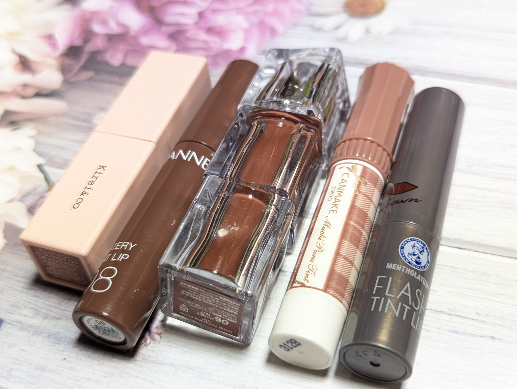 お化粧初心者です👌いつの間にやら手持ちセザンヌティントが3本になってたのでまとめて撮ってみました💐たぶんイエベ、でも春か秋かわからん私が気に入っているのは・04キャメルオレンジ・06ピンクベージュ・08カフェブラウンです👌❣️(カフェブラウン...