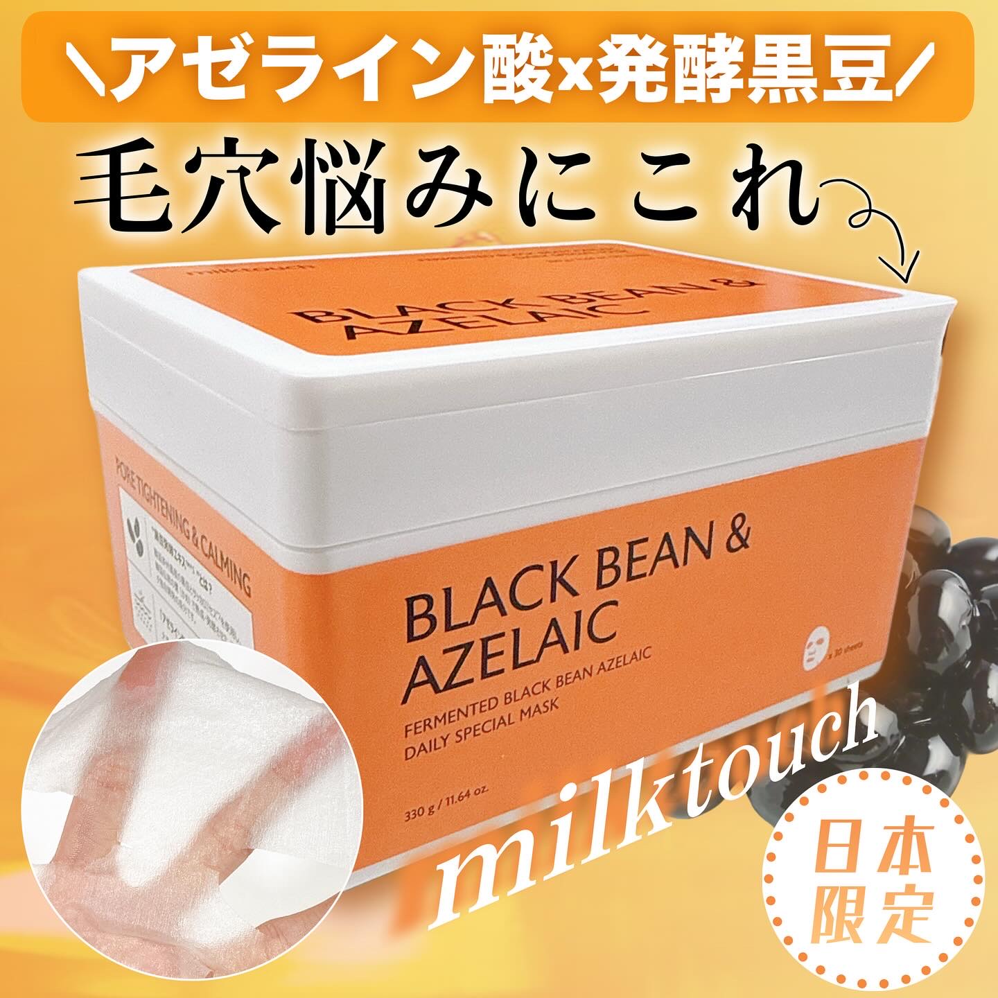 - 【日本限定】 1:“皮脂ケア成分”として注目のアゼライン酸*1が繰り返す毛穴悩みにアプローチ アゼライン酸*1は、皮脂による肌のベタつきを防ぐサポートや肌のなめらかさをサポート、肌荒れ予防などに働きかける話題の成分。 皮脂の過剰分泌による毛穴目立ちにアプローチして、毎日のケアでなめらかな肌印象に導きます。 ミルクタッチは、デイリーマスクにたっぷりとアゼライン酸を配合し、毛穴の目立ちにくいイキイキとした肌印象に近づけます。 2:韓国伝統の甕器(かめき)発酵で「黒い宝石」と呼ばれる黒豆を発酵 韓国のチェジュ島は自然豊かな火山島。 ミネラルなどの栄養分をたっぷりと含んだ土壌で育った黒豆は「黒い宝石」と呼ばれています。 黒豆と発酵酵母を持つサッカロミセス*4で発酵させて生み出された黒豆発酵エキス*2は、肌にふっくらとしたうるおいを与えて、乾燥による毛穴目立ちをケアします。 3:ナイアシンアミド*1が毛穴ケア*3も潤いに満ちた透明感も、乾燥によるあらゆる肌悩みに 肌荒れの予防や乾燥くすみのケア、バリア機能のサポート、肌にハリを与えるサポートなど美容成分界のマルチプレイヤー、ナイアシンアミド*1も配合。毛穴目立ち*3のほかさまざまな乾燥による肌悩みに働きかけ美肌をサポートします。 4:低刺激処方*5&こだわりの純テンセルシートを採用 毎日使っていただきたく、低刺激処方*5に。 また、エッセンスをたっぷり含有する吸収性の高いユーカリ木由来の純テンセルシートを採用。 肌当たりがなめらかで、肌に優しい使い心地が特徴です。 *1整肌成分 *2ダイズ種子エキス(整肌成分) *3乾燥による *4シゾサッカロミセス発酵液(整肌成分) *5すべての人に皮ふ刺激が起きないわけではありません