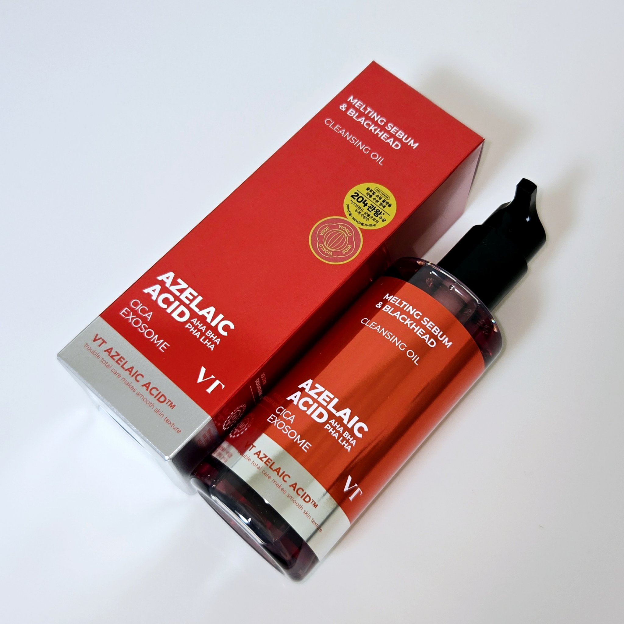 - 最近話題の毛穴ケア・整肌成分アゼライン酸!VTからはクレンジングオイルが登場! ポイントメイクまで落とすしっかりした洗浄力で、毛穴・皮脂までケアし保湿まで叶える一石三鳥アゼライン酸クレンジングオイル。 19種の植物性オイル*1も配合で、目に見えるブラッドヘッド*2から、隠れているホワイトヘッド*2、皮脂まですっきりケアします! ダブル洗顔不要! ※パッケージリニューアル ■このような方へおすすめ メイク・毛穴までディープクレンジング求める方 クレンジングでスキンケアまで行いたい方 ツッパリ感の少ないクレンジングを探していた方 ブラックヘッド*ケアも行いたい方 *1ダイズ油、アルガニアスピノサ核油、ユズ果実油、コメヌカ油、オタネニンジン種子油、アーモンド油、ザクロ種子油、リンゴ種子油、ホホバ種子油、ツバキ種子油、、バオバブ種子油、ユチャ種子油、ベニバナ種子油、ヒマワリ種子油、ヒポファエラムノイデス油、オリーブ果実油、アボカド油、アンズ核油、クロフサスグリ種子油(いずれも保湿) *2古い角質による