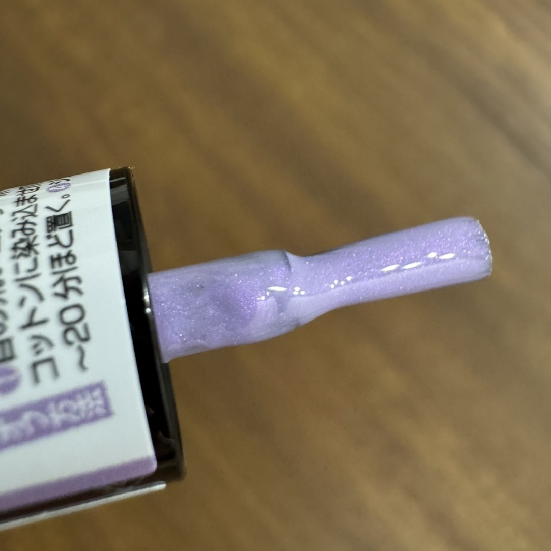 刷毛はスリムで束感があります。 とても速乾です✨ 色によって1度塗りだと、シアーだったりムラになりやすいものがあるので、好みで1〜2度塗りするといいかも🥰 09ユニコーンパール 11ロゼスパークル