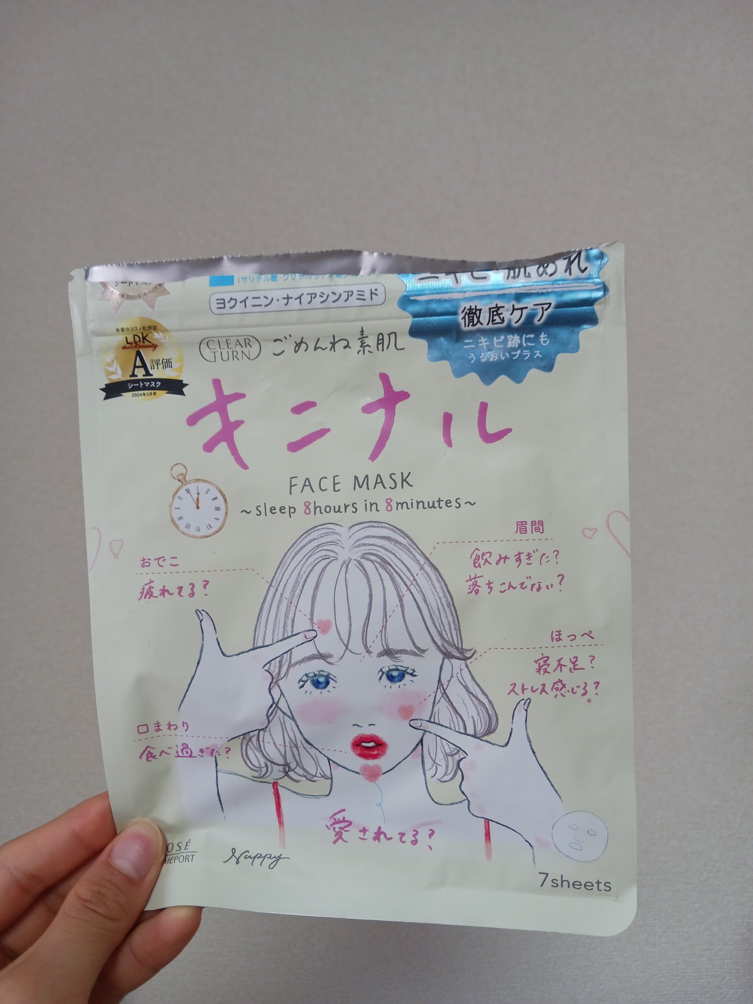 お肌が不安定な時の救世主🌟 クリアターン ごめんね素肌 キニナルマスク すぐ赤みが引いてお肌が落ち着いてくれるので、お肌がちょっとでも荒れそうな時にすぐ使っています🌟 アクネ菌を殺菌して、肌の炎症を抑えニキビを防ぎ、健やかななめらか肌に🌟