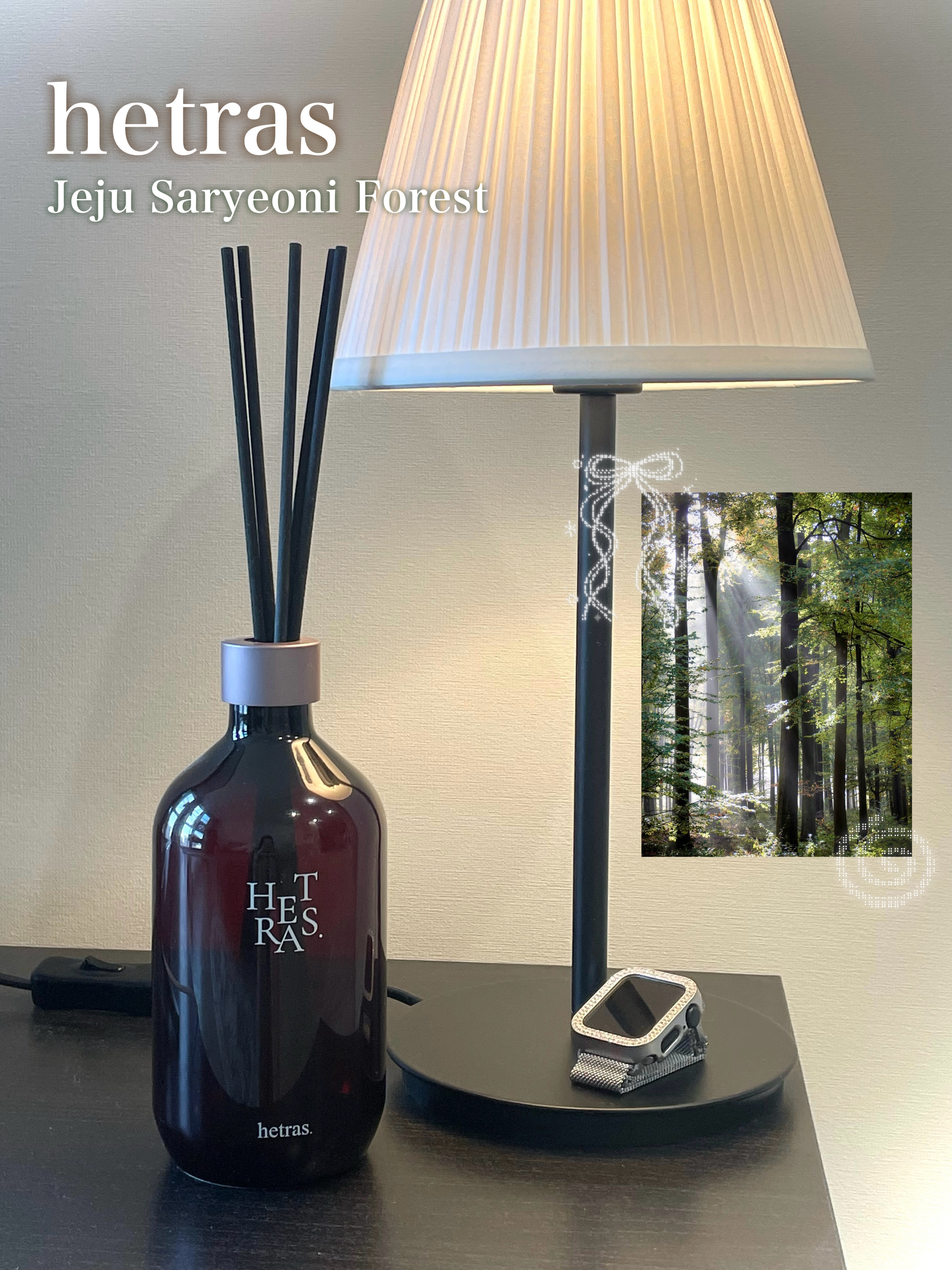 オシャレさと高級感溢れる深みある香りが人気のヘトラスディフューザー。10種ある中でも特に人気の香りが「済州サリョニ林道」「ホテルウッド」のふたつ。 済州サリョニ林道はグリーンとシトラス。森の中で深呼吸したときのような自然な香り。爽やかな気持ちでいたいとき、すっきりとした清潔感が欲しい場所に。 香りがいいのはもちろん、とにかく大容量で香りが広範囲に広がり長持ちするところ、見た目の高級感、意外とパケは軽いプラなので捨てやすいところが推しポイント!
