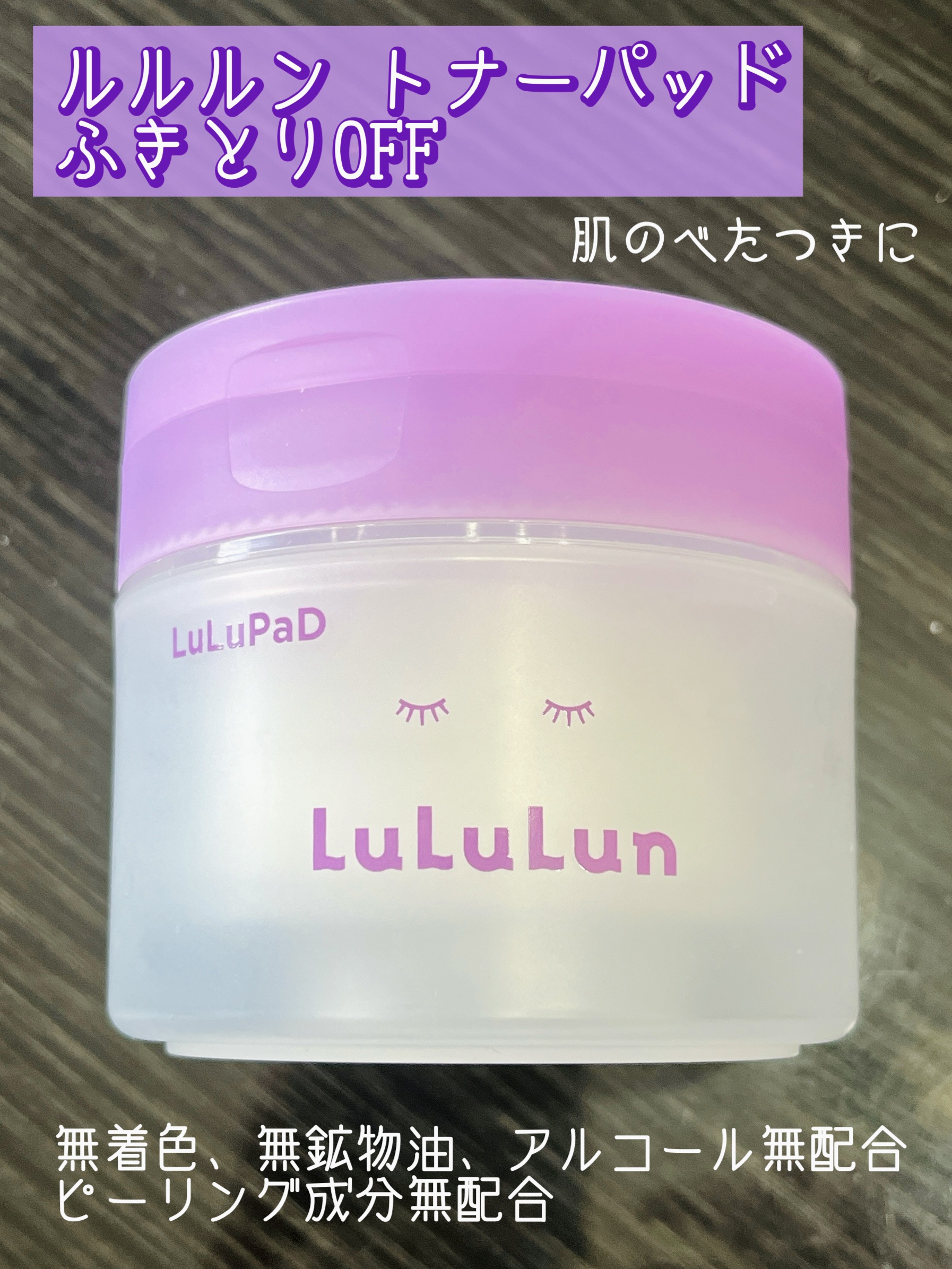 - <ルルルン トナーパッド ふきとりOFF> 水、ペンチレングリコール、グリセリン、カルボマー、水酸化K、フェノキシエタノール、メチルパラベン、香料、PG、PEG-60水添ヒマシ油、ナイアシンアミド、バクチオール、真珠母貝エキス、アスコフィルムノドスム/ヒバマタ/ヒジキ/トロロコンブ/レソニアニグレスセンス/ミツイシコンブ/リシリコンブ/ワカメエキス