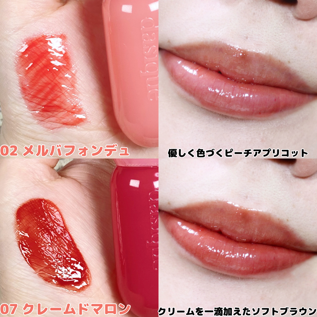 唇の上に天使の輪のような光沢を与えるグロス💋 もっちりとしたテクスチャーで、唇の気になる縦じわをカバーしながら、コーティングしたようにツヤのある仕上がりに💫 透け感のある発色で軽やかな印象を与えてくれます🫧 09,10は日本限定色でQoo10で購入できます。11はPLAZA限定色で、02のミニサイズとのセットで販売されています☺️