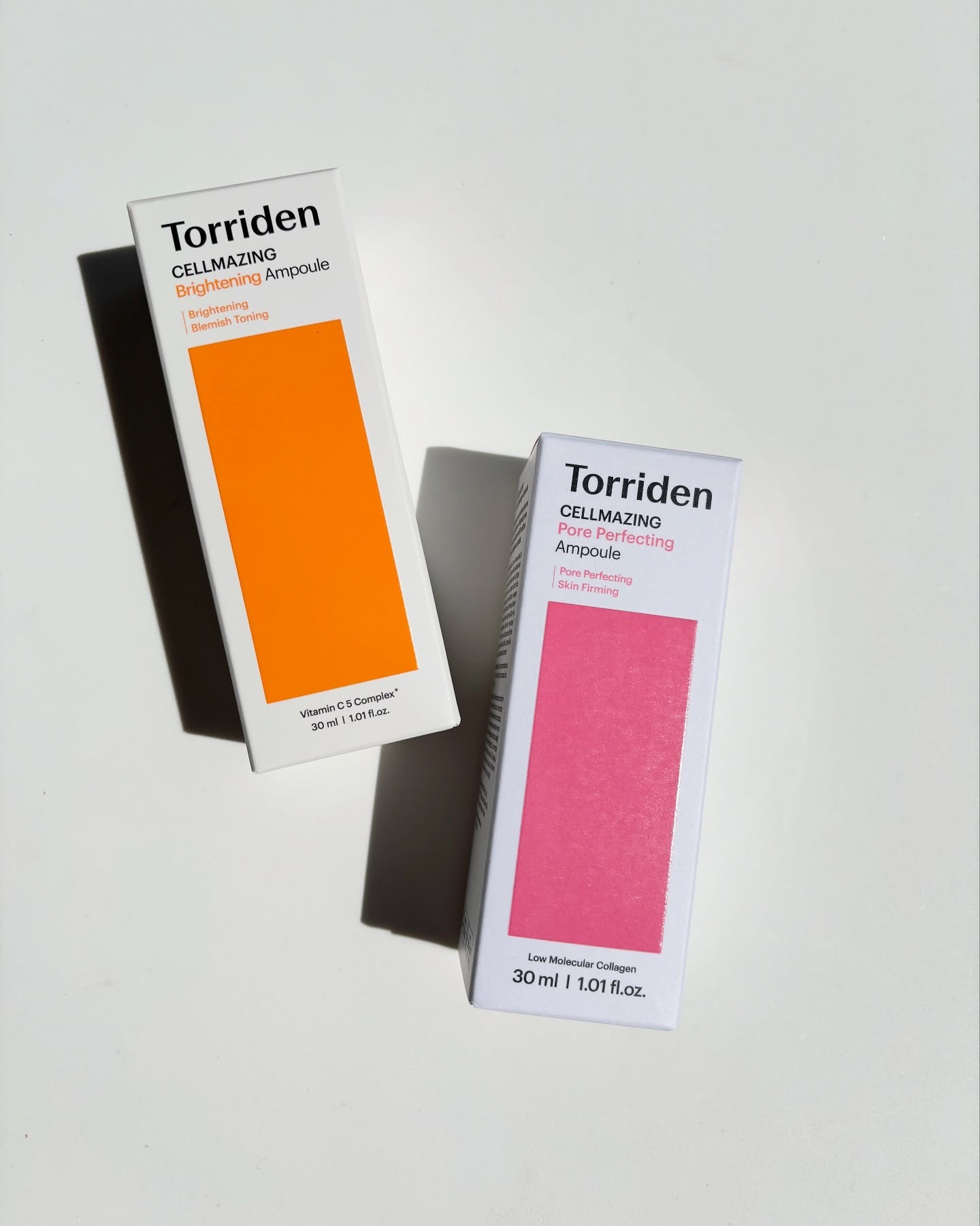 TorridenセルメイジングコラーゲンポアパーフェクティングアンプルセルメイジングビタCブライトニングアンプルオレンジ🧡とピンク🩷人気者トリデンの新しいアンプル2つをお試しそれぞれ違うテクスチャーパケがとってもかわいいよねオレンジ🧡はセルメ...
