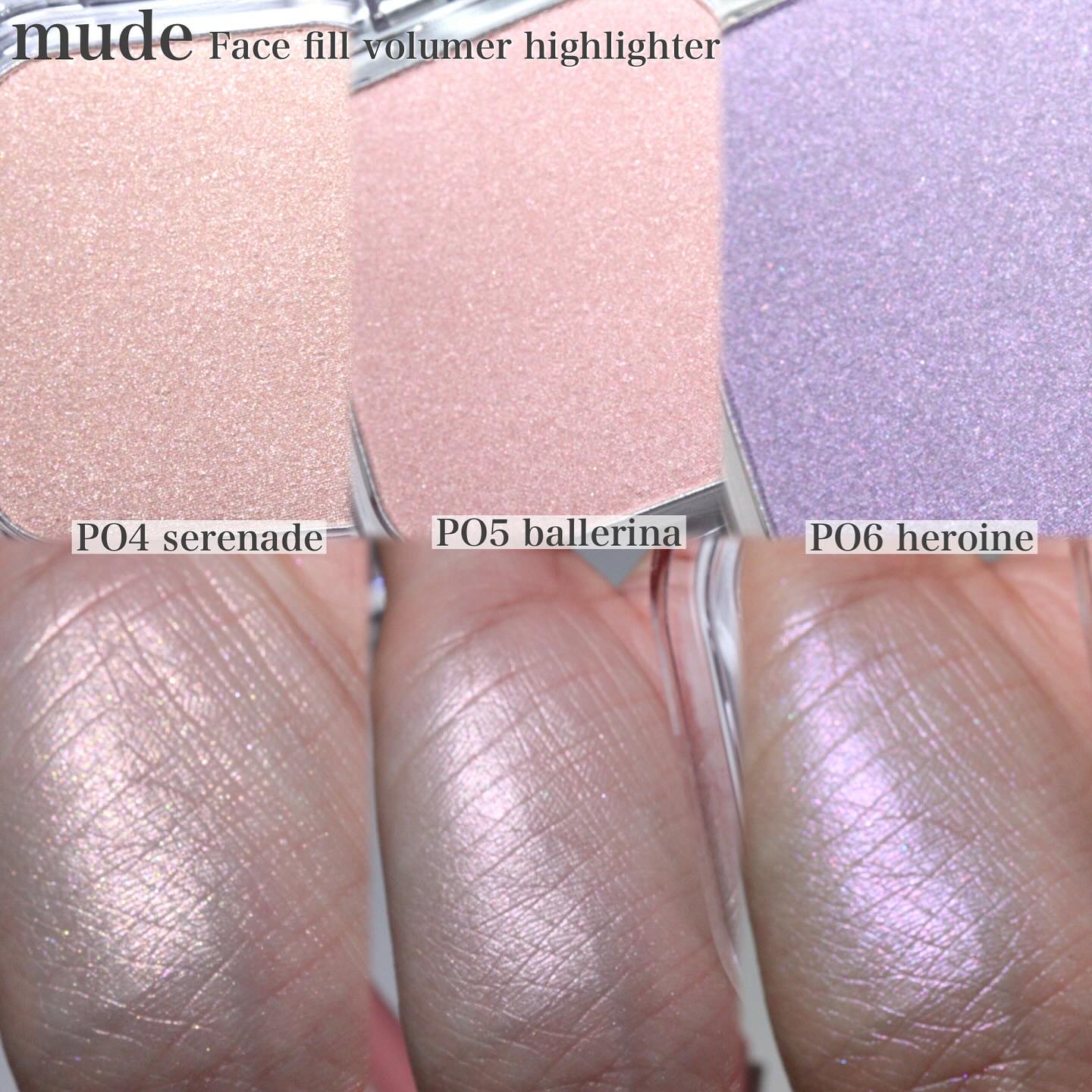 💡mude💡フェイスフィルボリューマーハイライターP02MARSこれ可愛い!!見た感じピンクパール、レッドパールに、ゴールドラメ、ブルーラメもうっすり見える。ラメは少なめでパール感が強いです!ラメ感は少なめ+しっとりとした粉質で頬にのせてもラ...