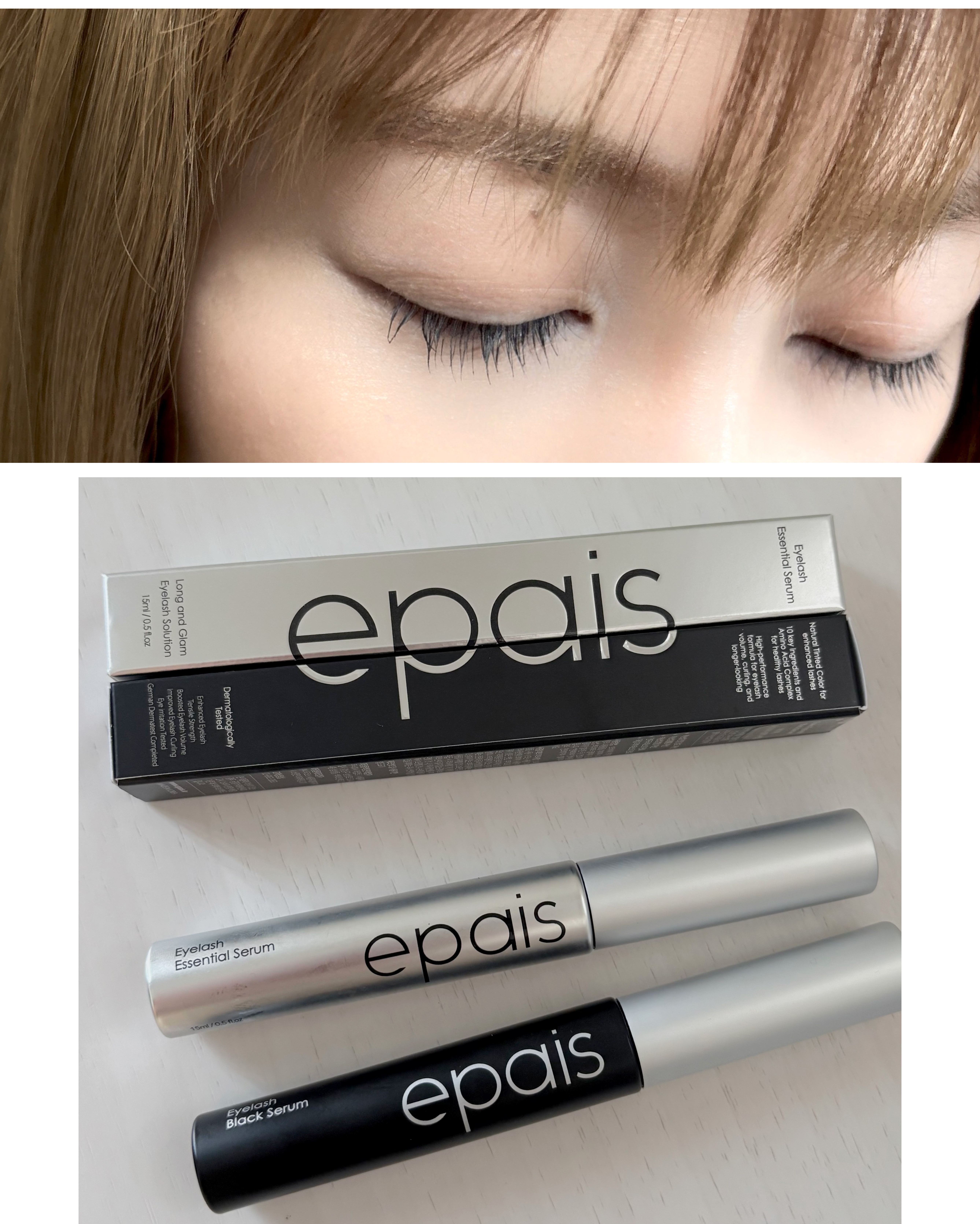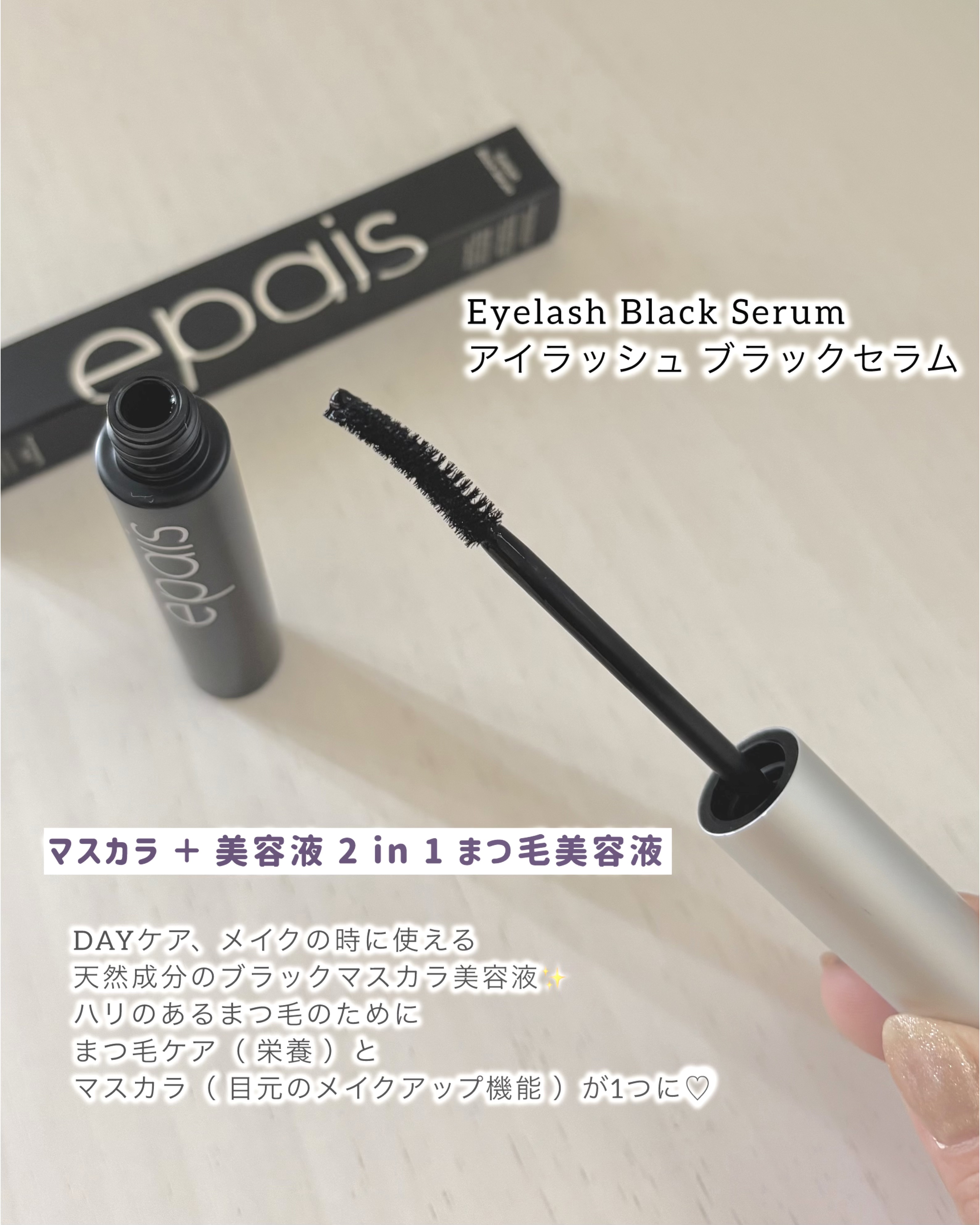 24時間まつ毛に栄養を👁️✨ 最近まつ毛の元気のなさが気になってきた 🌝夜はエッセンシャルセラム 高濃度栄養ケア 先端に丸井チップつきのセラム 🌞朝はブラックセラム メイク+栄養ケア まつ毛ケアとマスカラが一本で完結できるいいとこどりアイテム