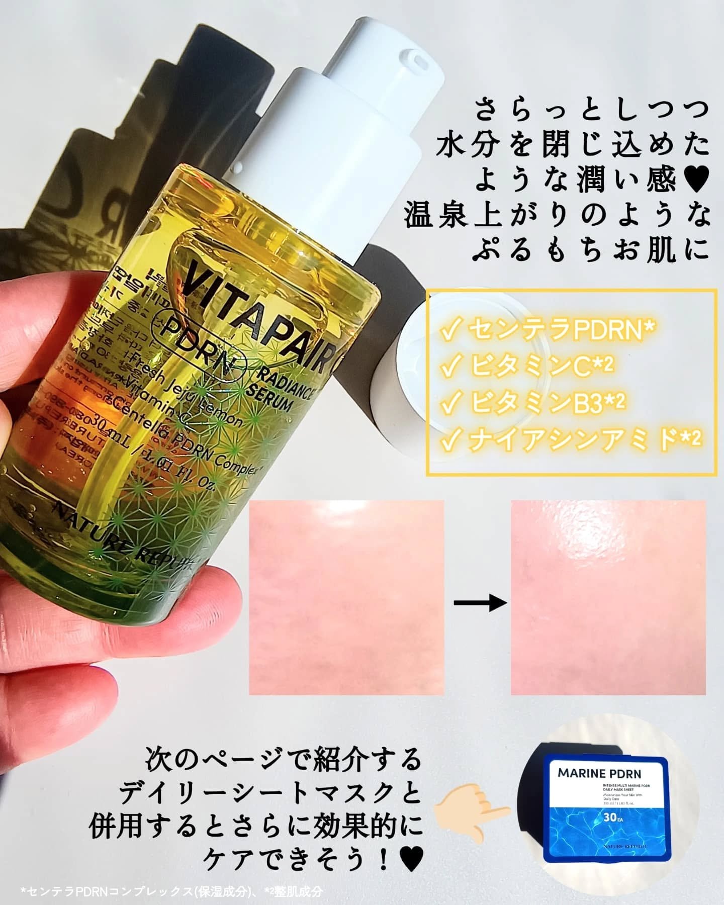 💛NATUREREPUBLIC💛ビタペアCPDRN水潤セラム30㎖ネイリパで人気の【ビタペアCライン】から発売されたセンテラPDRN配合のセラム☺️敏感肌や荒れたお肌を鎮静しながらお肌の基礎を整えて温泉上がりのような潤いたっぷりなぷるぷるもち...
