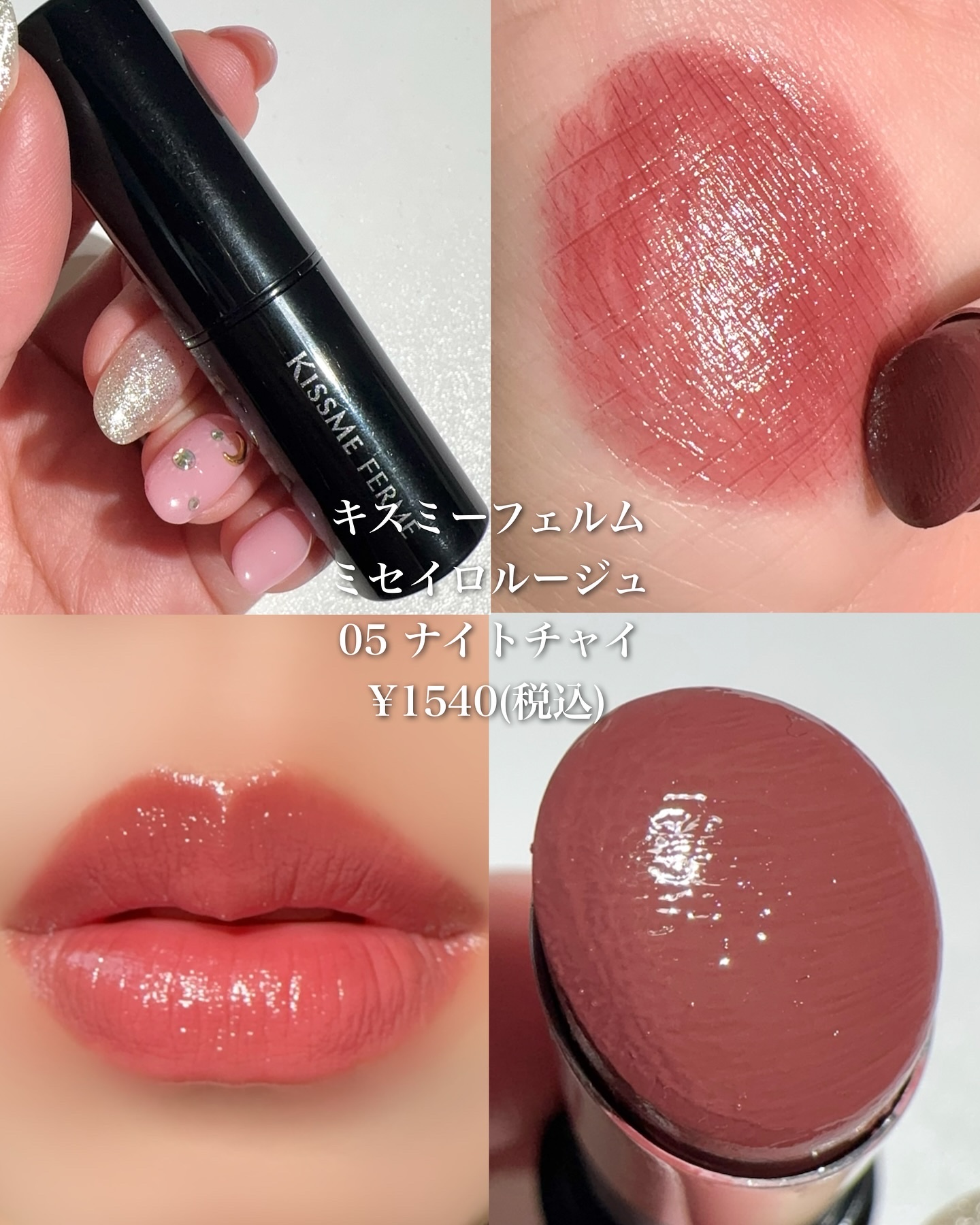 シンプルながらに使いやすい キスミー フェルムさんのアイテム⑅*. 輪郭を美しく整えるだけでなく オーバーリップにしたりちょっとグラデっぽくしたりと痒いところに手が届く感じで良きですね…… ちょっぴり大人なブラウン系カラー とろけるようにするすると塗れるし唇に溶け込んでちゅるんとした仕上がりがたまらなく可愛いリップです。