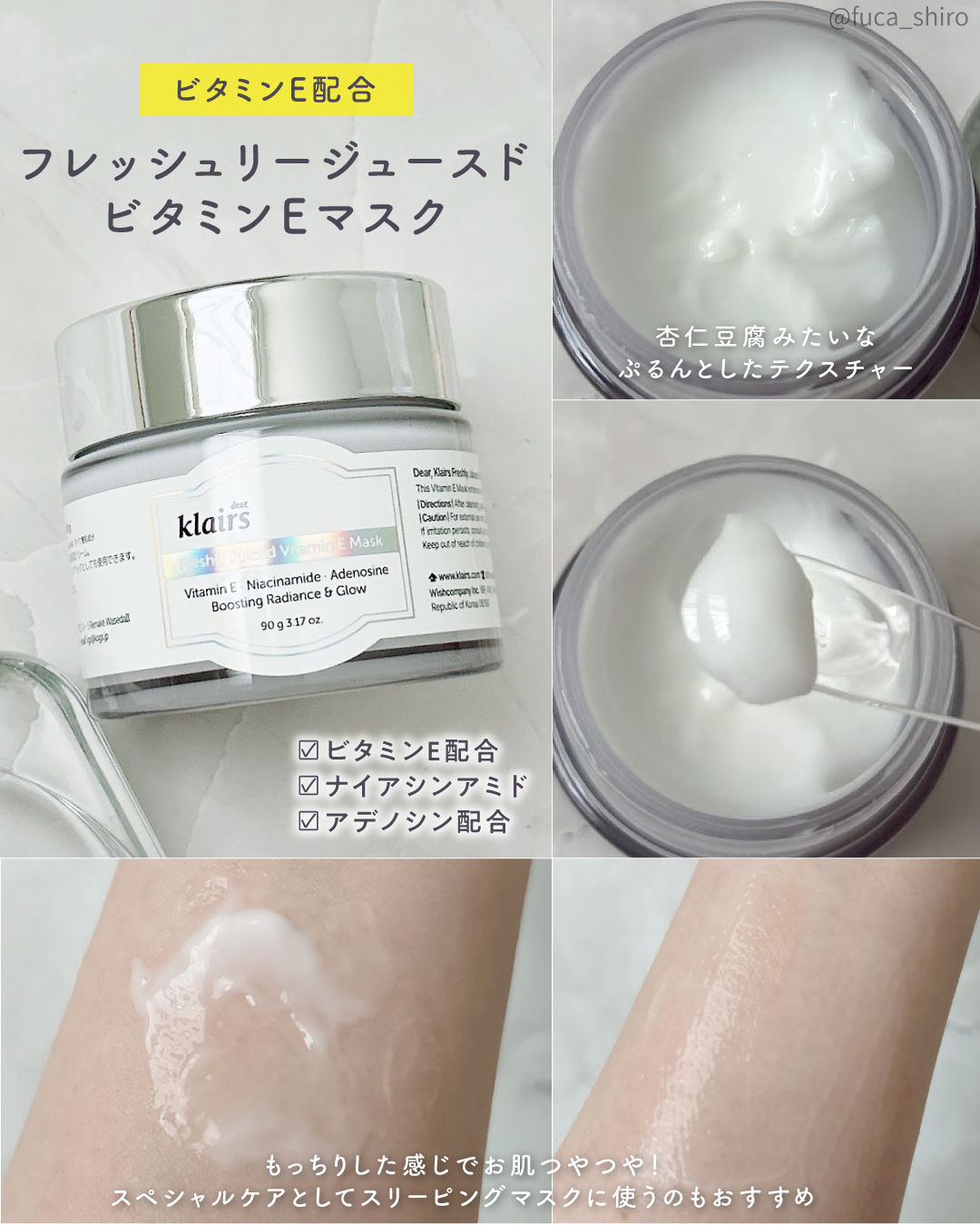 Klairs フレッシュリージュースドビタミンEマスク(90g) | 2,700円 |