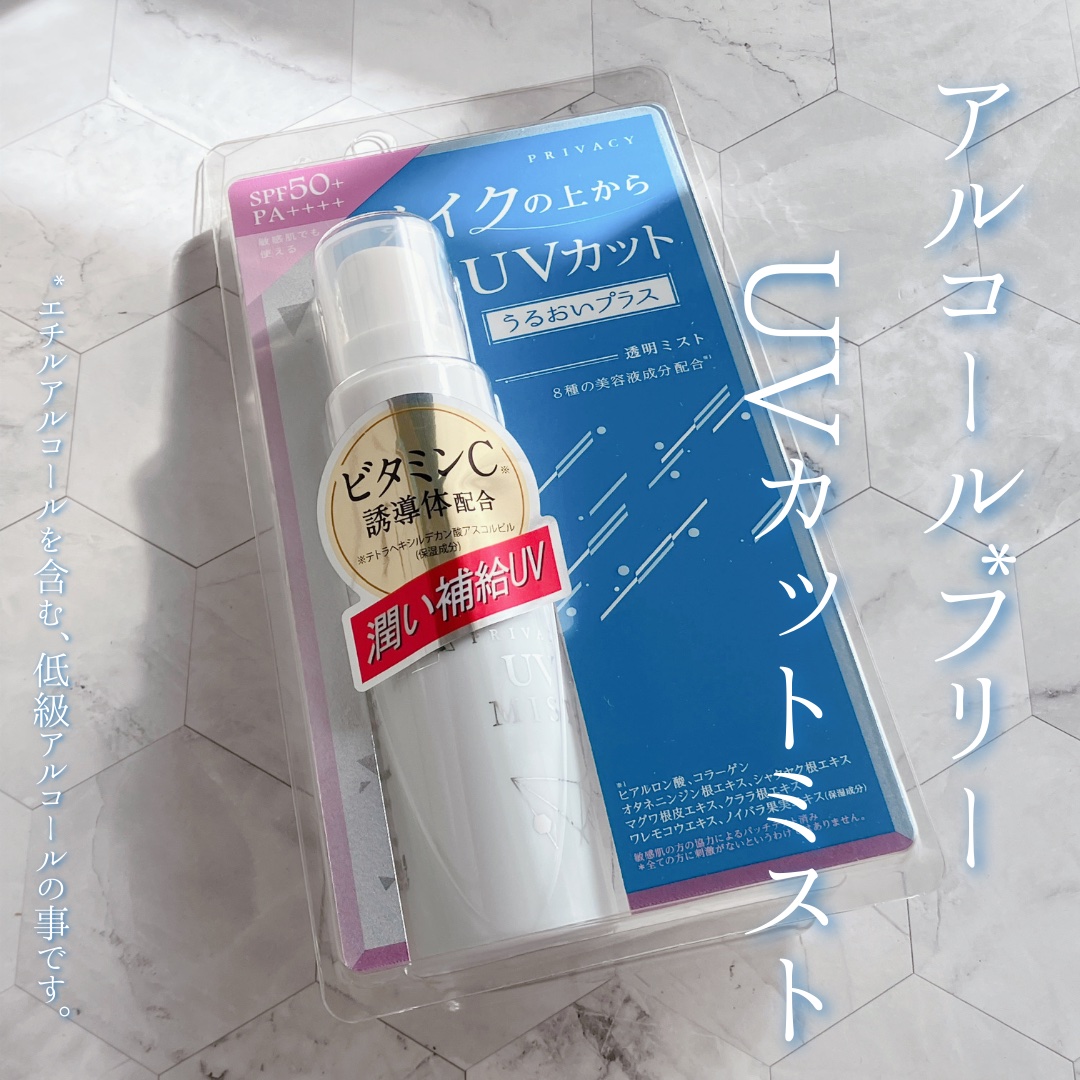 PRIVACYプライバシー UVミスト50メイクの上から塗り直せるUVシリーズ✨️UVカットしながらうるおいプラスするアルコールフリー*¹処方のUVカットミスト!SPF50+PA++++。8種の美容液成分*²配合🥺♡スプレーから出るミストが均...