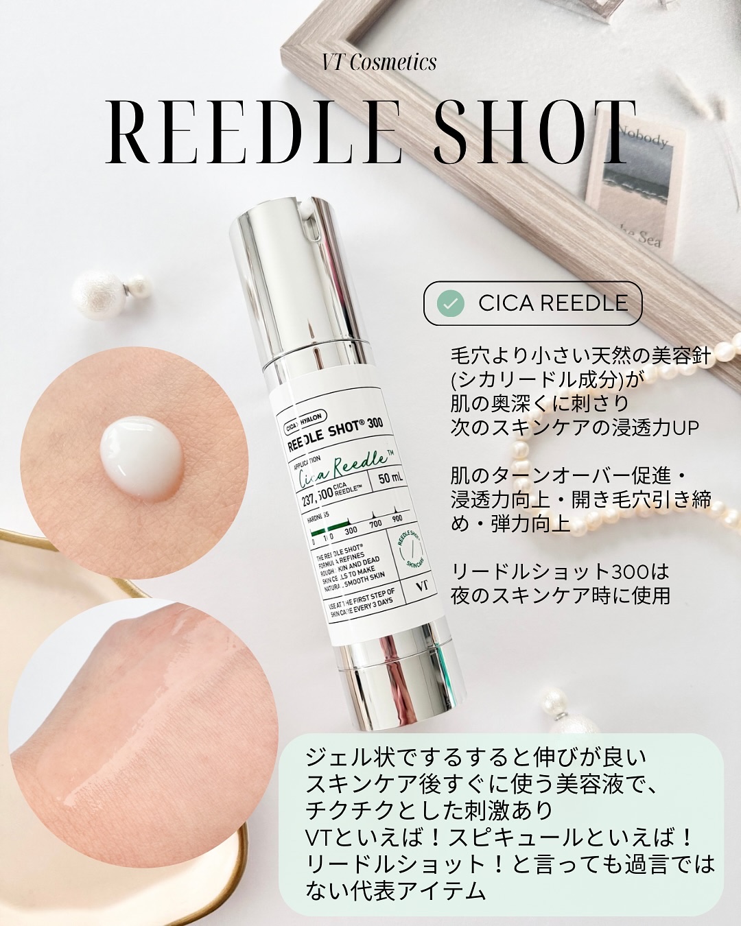 #PR#VT公式アンバサダー“ハリ&ツヤ”におすすめの組み合わせ𓊆リードルショット300&PDRNアンプル𓊇を紹介します❕🪡VTの代表作の針美容液リードルショットの中でも300のもの。普段は100を使ってるから、300は刺激を感じる❕そのチク...