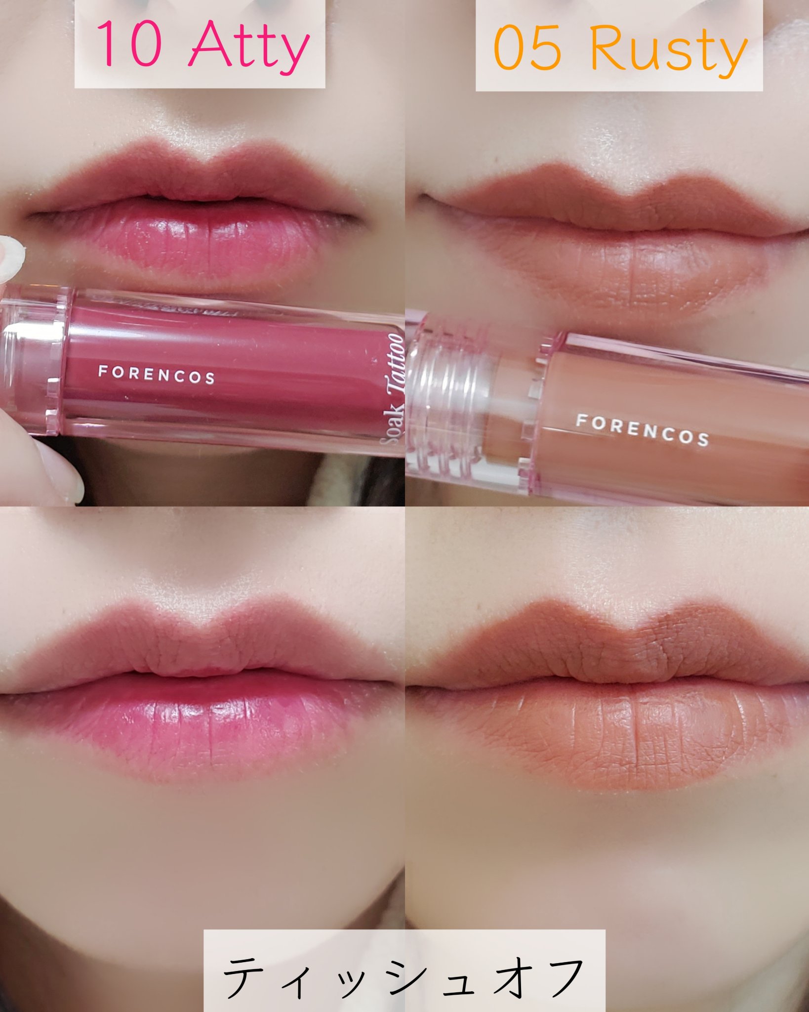 FORENCOS様からいただきました🥳ソークタトゥーティント ¥1,48005ラスティー10アティ✼••┈┈••✼••┈┈••✼••┈┈••✼••┈┈••✼タトゥーのように落ちにくいという高発色系ティント💡カラバリは全16色で豊富です💄✨●色...