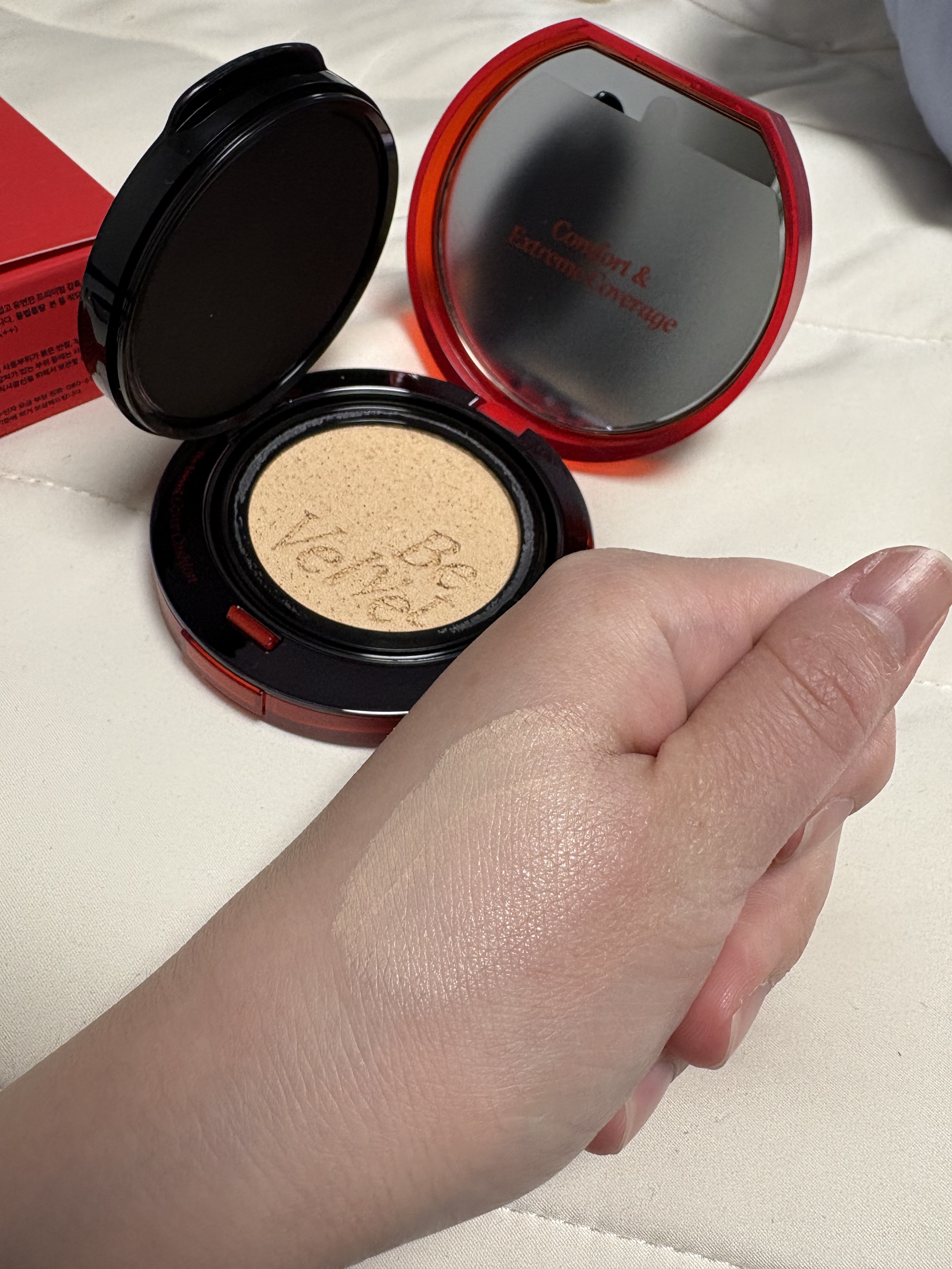 - リニューアル発売 ① 100時間崩れず持続する超密着エクストリームカバー アモーレパシフィックの特許技術*を適用したトリプルレイヤーフィルムフォーマーがメイクを完璧にロック。 NMFカバーパウダー*が隙間なく欠点を均一かつ完璧にカバーし、100時間持続メイクを実現するエクストリームカバークッション * 特許出願番号 : 10-2024-0053975 *アミノ酸誘導体 (NATURAL MOISTURIZING FACTOR)でコーティングしたカバーパウダー ② 不快感のない超軽量テクスチャー &きれいなカラーが続きダークニングの心配ZERO 従来*に比べて40%軽くなったパウダーが、極限まで薄く不快感を感じずにカバーするテクスチャーを実現 オイルによるカラーの影響を最小限に抑え、ダークニングの心配なく長持ちするカラーをキープ ③ 乾燥しないコンフォートベルベット 従来*に比べて2倍量配合した低分子ヒアルロン酸で肌の中の水分層を満たし、弾力ペプチドと保湿、バリア強化効能のアルギニンを配合して乾燥感のない快適なコンフォートベルベットテクスチャーを実現 *ビーベルベットカバークッションニュークラス ④ ディテールにこだわったエクストリームクリーン処方 ビーガン認証はもちろん、皮膚刺激テスト、ブルーライトカットテストとファヘFREE(20種類の注意成分)、セフォラクリーン(Phase4)レベルをクリアしたエクストリームクリーン処方