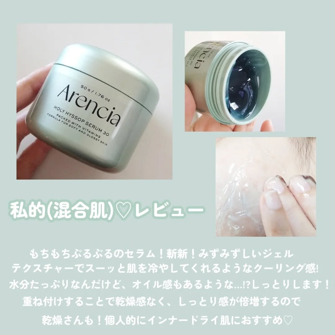 arenciaの#ヒソップもちセラム50g💚⭐️フレッシュなフランス産ヒソップ×高機能成分で叶えるエイジングケア⭐️シミ・くすみをケアし、ワントーン明るい素肌へ導くナイトセラムQoo10スキンケア部門1位🥇写真3枚目の動画の通り、ほんとに柔ら...