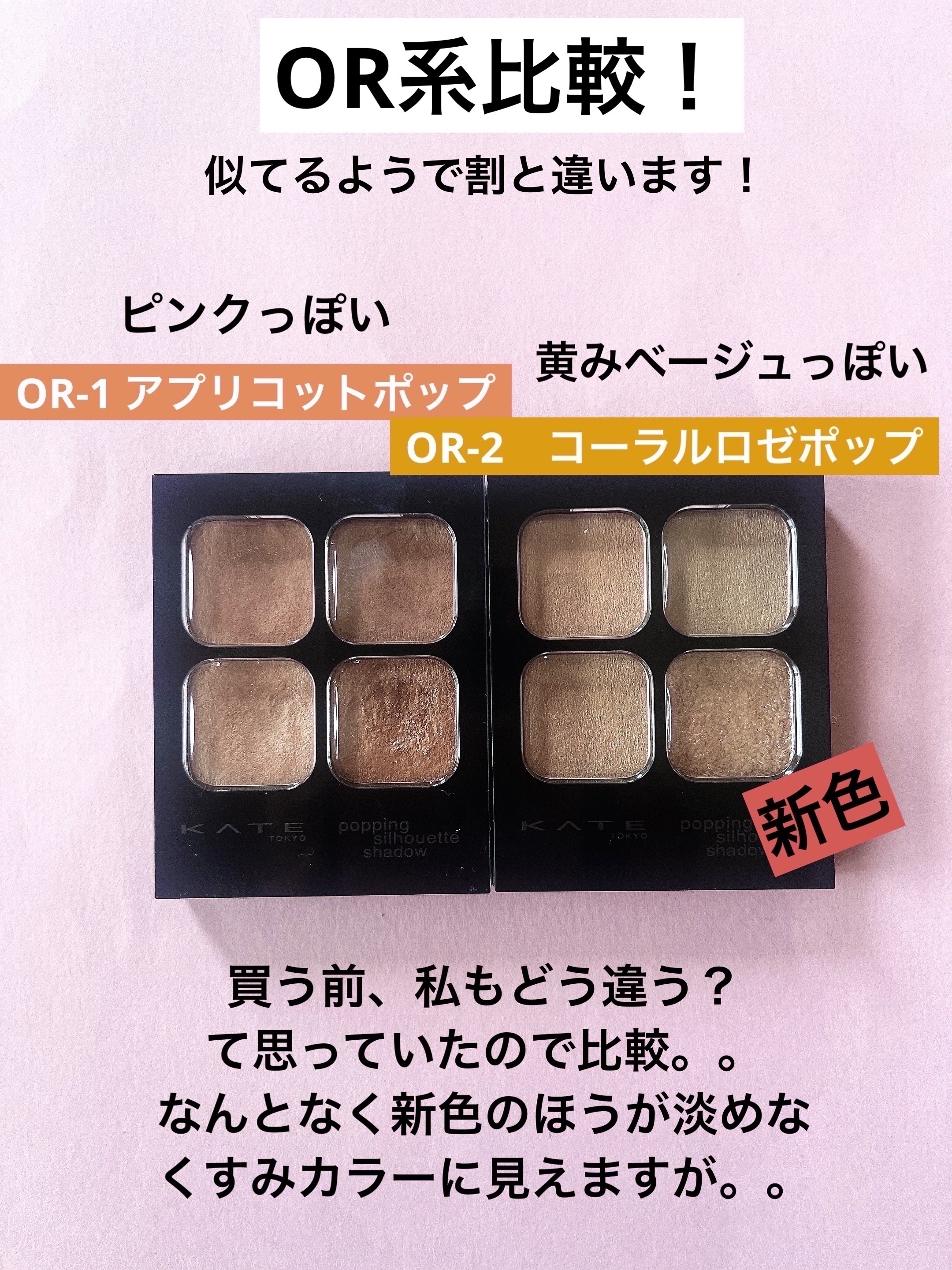 KATEポッピングシルエットシャドウOR-2コーラルロゼポップポッピングシルエットシャドウの新色♡コーラルロゼ×グレージュ系カラーのコーラルロゼポップ!淡く優しい色で可愛い🫶どんな場面でも使いやすいカラーかなと思います。手持ちの中で1番似てい...