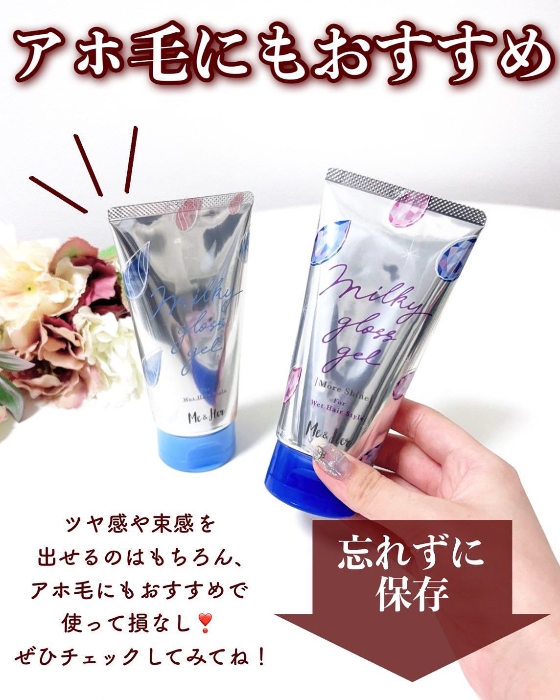 Me&HerMilkyGlossGel今の時期は肌以外に髪も乾燥してパサつきやすくない?😭パサつく髪には髪のツヤをキープできて@cosmeで高評価のMilkyGlossGelでセットしてみて🤩特徴①毛束を立体的にキープするスタイルロック設計で...