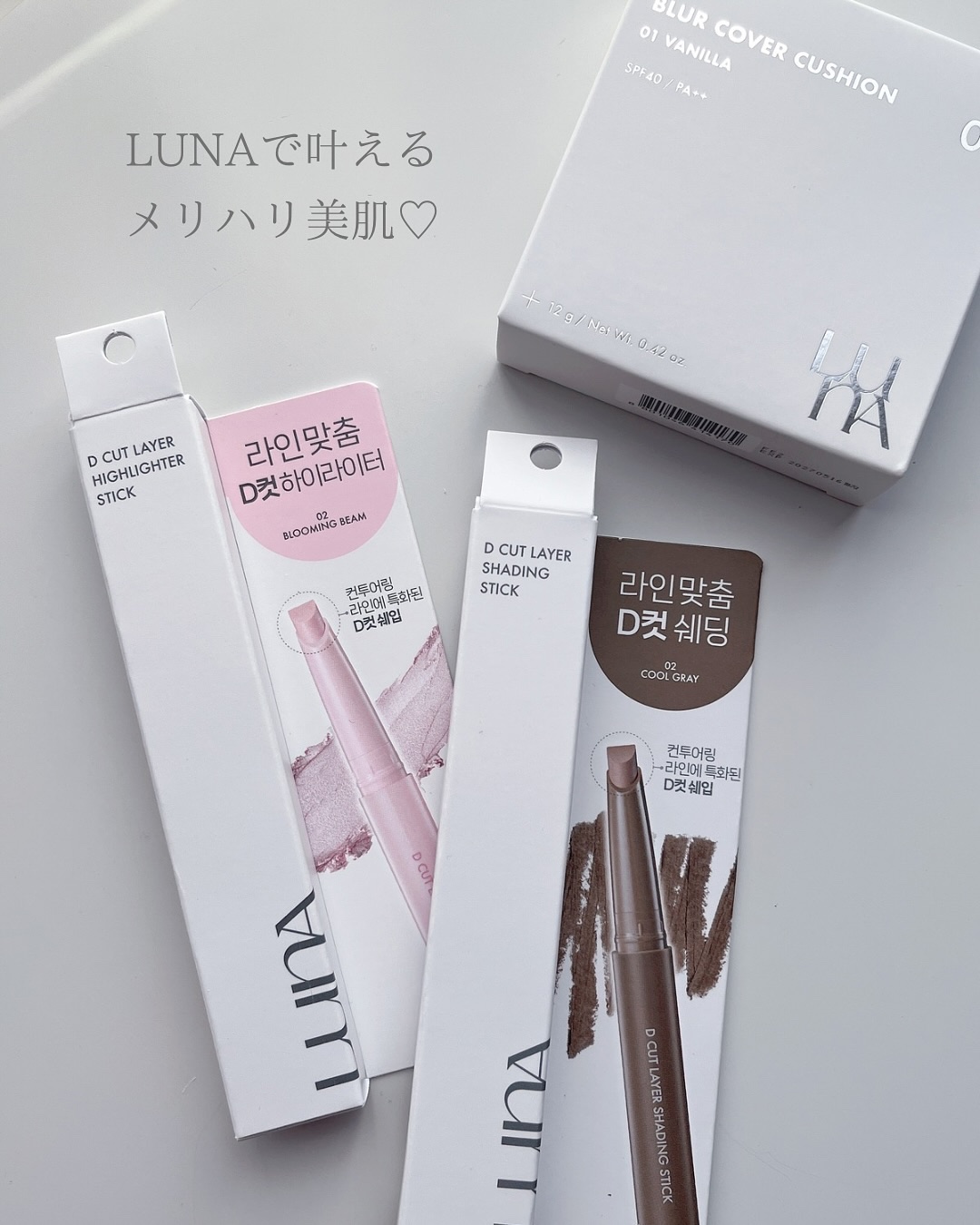 🩵Luna🫧ブラーカバークッション🫧Dカットレイヤーシェーディングスティック🫧Dカットレイヤーハイライタースティックシェーディング、ハイライタースティックが新発売✨どちらも使いやすいDカットシェイプ❕ハイライトカラーはソフトピンクで可愛いです...