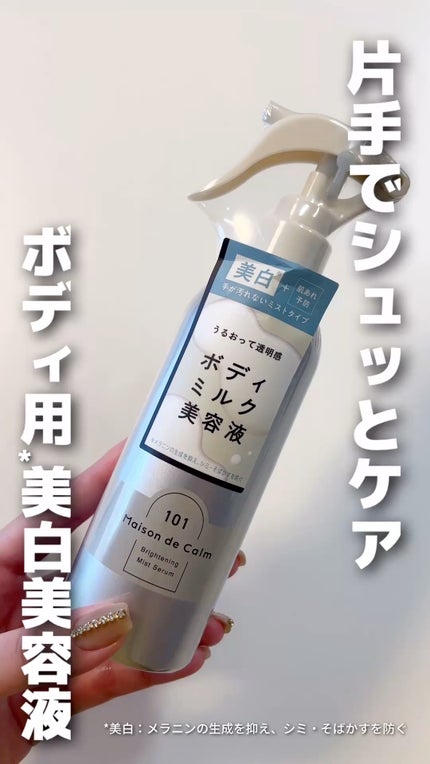 ✨新商品✨メゾンドカームブライトニングミストセラム販売名:薬用美容液W7a【医薬部外品】を使ってみたよ♪❤︎特長❤︎✔️ミストタイプのミルク状美容液で手軽にボディケアが完了!→ズボラさんにもおすすめ♪✔️美白*有効成分配合でうるおって透明感の...