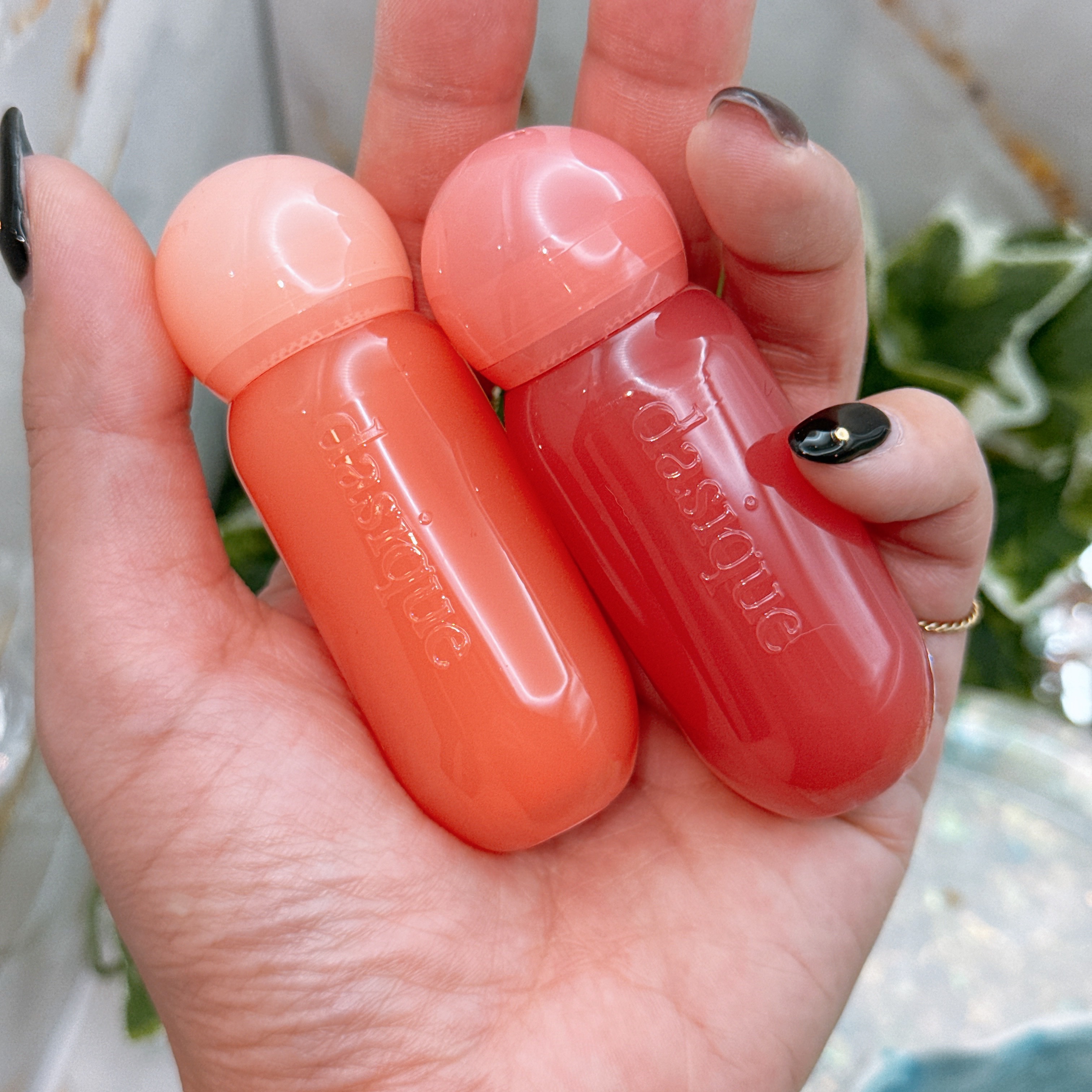 - 【夏新作2カラー登場!】 まるで果実のしずくがそのままリップになったような、みずみずしさと繊細なツヤを詰め込んだ「ジュージーデューイグロウティント」 夏新作で登場する新色「ベリーハート」、「タロミルク」は、透明感とふんわりとした色づきを徹底的にこだわって、何度もテストを重ねて生まれた特別なクールトーンカラー。 ひと塗りで唇をうるおし、重ねても重くならず、果実たっぷり!光をまとうような仕上がりに! - 蜂蜜に漬けた果物のように、うるちゅるふっくらとした果汁粘膜「ジューシーデュイグロウティント」 ミニだけの限定4色 15 ローストロベリー 16 ハミングピンク 17 ロージーシナモン 18 モーブディープス ♡唇に触れた途端、ぷるんと色っぽい果汁コーティング 果汁コーティングがじゅわっと唇に広がり、透明に輝くうるちゅる感を!蜂蜜に漬けた果物のようにぷるんぷるんとした唇を演出するグロウティント ♡イエベ、ブルべに合わせた多彩なカラーバリエーション 14色のカラーバリエーションで単独または、2色レイヤーリングして様々なリップメイクを演出 ♡ティント+リップグロスを一気に塗る効果! ティントの鮮やかな発色とリップグロスのうるうる透明ツヤ感が何度塗り重ねてもべたつかせず、唇にピタッと密着! 2025年11月1日(土)より、Qoo10公式ショップおよび東京フラッグシップストアにて発売予定