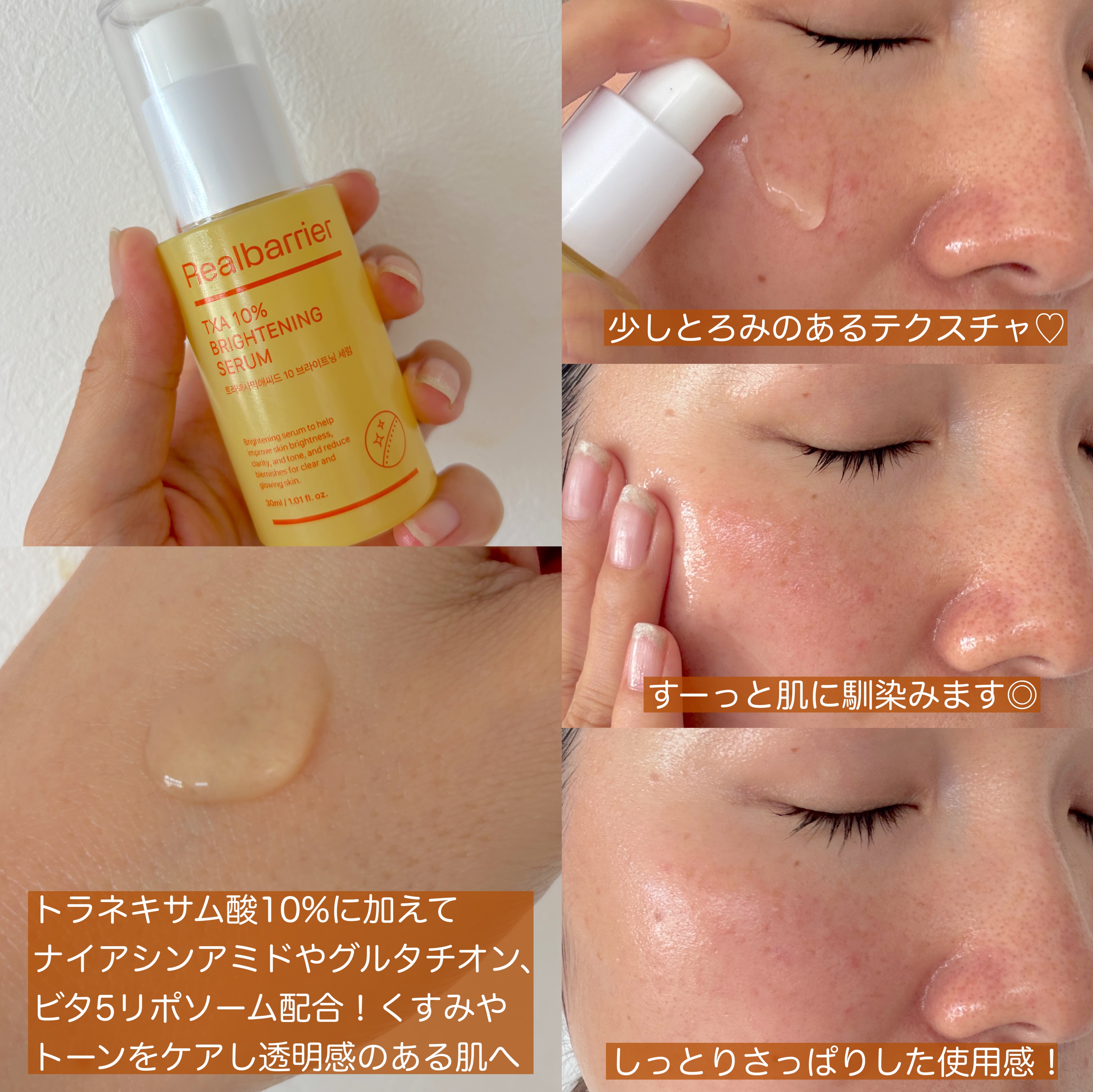 𓆸RealbarrierTXA10%ブライトニングセラム大好評だったシートマスクに続き、4月24日に「セラム」が新登場!シミや肌のトーンをケアし、透明感のある肌へ導くブライトニングセラムˊ˗ ◆4種のブライトニング成分配合トラネキサム酸10%...