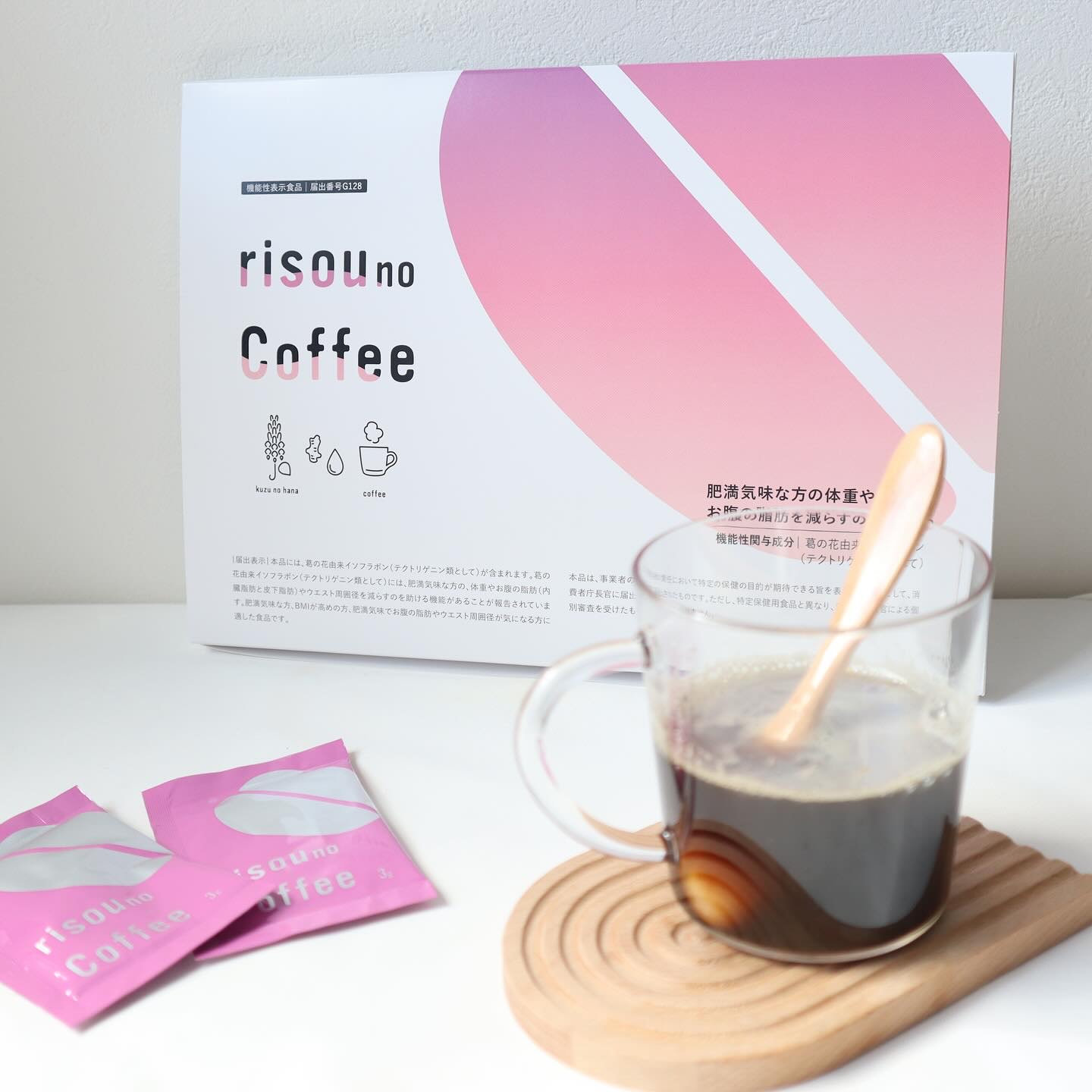 risounoCoffee☕葛の花由来イソフラボン(テクトリゲニン類として)を含有したコーヒー飲料ですいつものコーヒーを置き換えて綺麗なリズムを整え、軽やかに過ごせそう。冷たい水にも溶かしやすい粉末で、ホットでもアイスでも楽しめました◎香りも...
