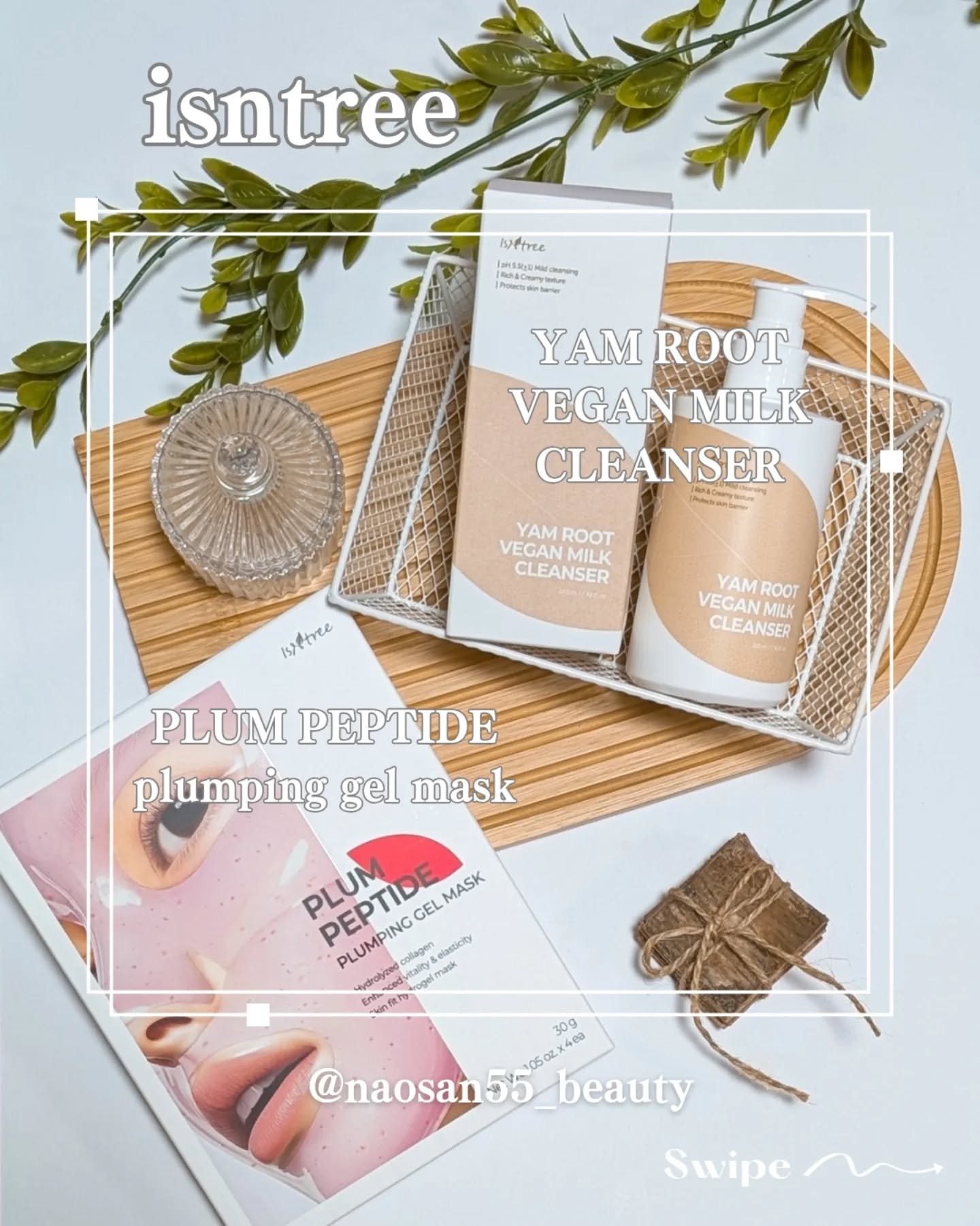 isntreeのうるもち肌生成コンビ♡ヤマイモヴィーガンミルククレンザーとプラムペプチドプランピングゲルマスクヤマイモヴィーガンミルククレンザーはヤマイモ配合で糸引くもっちりテクスチャーで優しい洗い上がり♡つっぱり感がなくかなりしっとり仕上が...