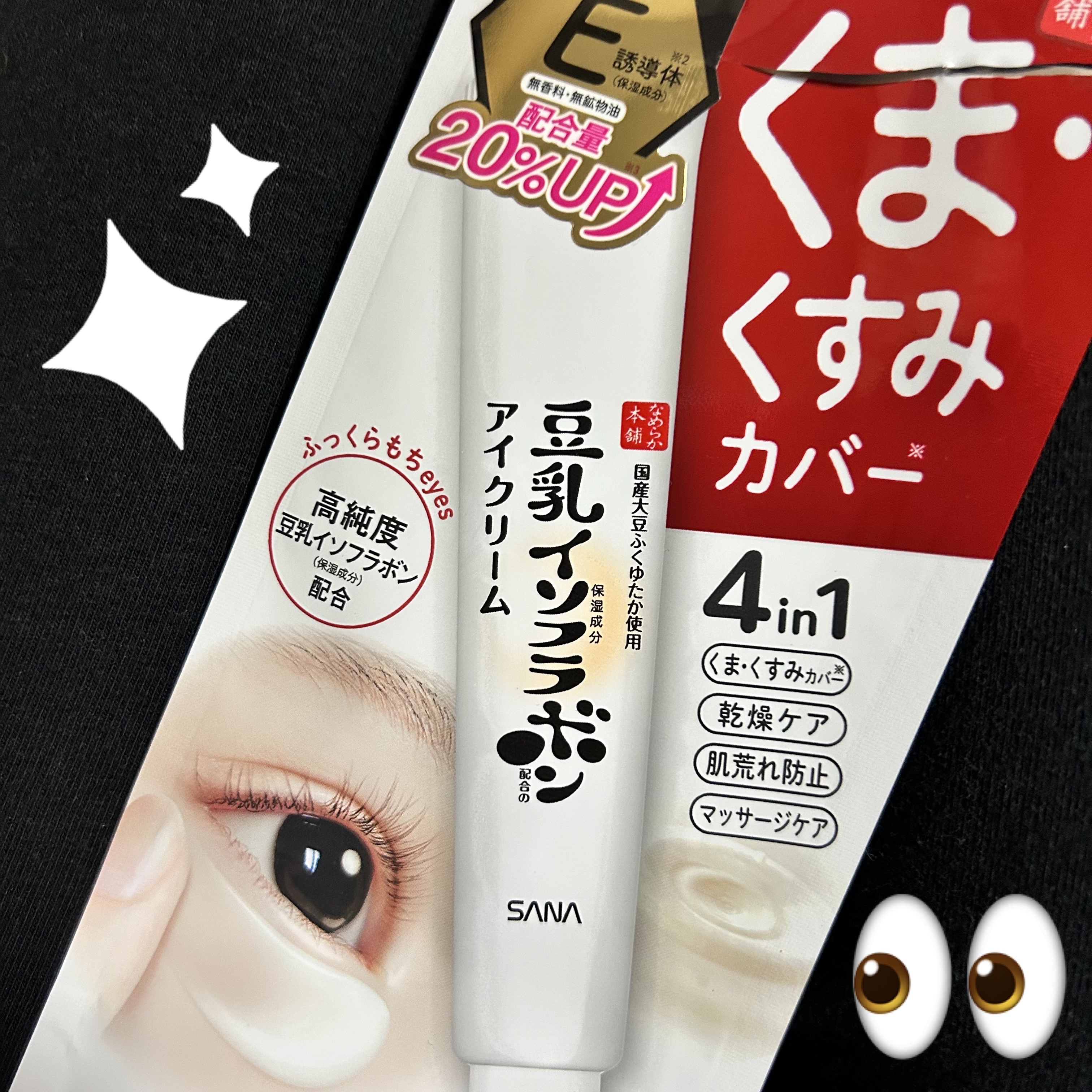 - ピュアレチノール※を新配合!濃厚アイクリームでもっちりハリeyes ※ 保湿成分 「リンクルアイクリーム N」は、『なめらか本舗』オリジナルの豆乳発酵液*1に加え、ピュアレチノール*1とビタミンE誘導体*2を新配合したもっちりとしたハリのある目元に導く「アイクリーム」です。 密着ポリマーがお肌の上で均一な膜を形成し、目元のハリ感をサポート。 毎日のスキンケアに取り入れていただくことで、年齢の出やすい目元をしっかりケアします。 〔①ピュアレチノール*1×豆乳発酵液*1×ビタミンE誘導体*2配合〕 「なめらか本舗」オリジナルのイソフラボン含有の豆乳発酵液*1に加え、ピュアレチノール*1を新配合。 さらに、ビタミンE誘導体(TPNaⓇ)*2も配合し、年齢の出やすい目元をしっかりケアします。 ・ピュアレチノール:ビタミンAの一種でハリのある目元に! ・豆乳発酵液:弾力感・うるおいを与えふっくらした目元に! ・ビタミンE誘導体(TPNaⓇ):お肌にぐんぐん浸透*3してイキイキした目元に! 〔②密着ポリマーで目元にハリ感〕 密着ポリマーがお肌の上で均一な膜を形成します。もっちりとハリのある目元に導きます。 *1 保湿成分 *2 トコフェリルリン酸Na(保湿成分) *3 角層まで