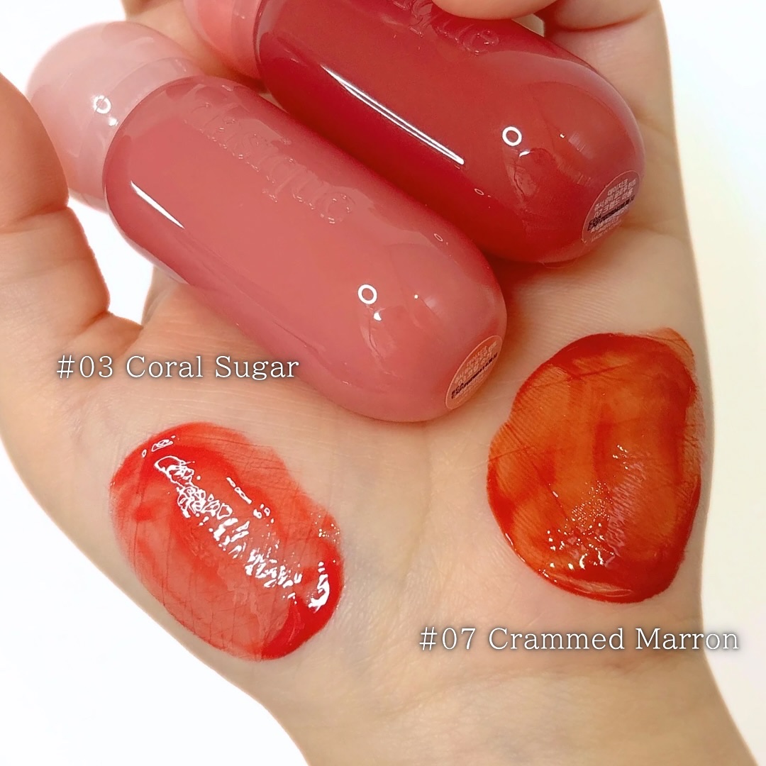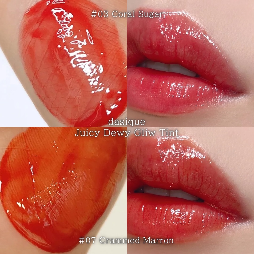 - 【夏新作2カラー登場!】 まるで果実のしずくがそのままリップになったような、みずみずしさと繊細なツヤを詰め込んだ「ジュージーデューイグロウティント」 夏新作で登場する新色「ベリーハート」、「タロミルク」は、透明感とふんわりとした色づきを徹底的にこだわって、何度もテストを重ねて生まれた特別なクールトーンカラー。 ひと塗りで唇をうるおし、重ねても重くならず、果実たっぷり!光をまとうような仕上がりに! - 蜂蜜に漬けた果物のように、うるちゅるふっくらとした果汁粘膜「ジューシーデュイグロウティント」 ミニだけの限定4色 15 ローストロベリー 16 ハミングピンク 17 ロージーシナモン 18 モーブディープス ♡唇に触れた途端、ぷるんと色っぽい果汁コーティング 果汁コーティングがじゅわっと唇に広がり、透明に輝くうるちゅる感を!蜂蜜に漬けた果物のようにぷるんぷるんとした唇を演出するグロウティント ♡イエベ、ブルべに合わせた多彩なカラーバリエーション 14色のカラーバリエーションで単独または、2色レイヤーリングして様々なリップメイクを演出 ♡ティント+リップグロスを一気に塗る効果! ティントの鮮やかな発色とリップグロスのうるうる透明ツヤ感が何度塗り重ねてもべたつかせず、唇にピタッと密着! 2025年11月1日(土)より、Qoo10公式ショップおよび東京フラッグシップストアにて発売予定
