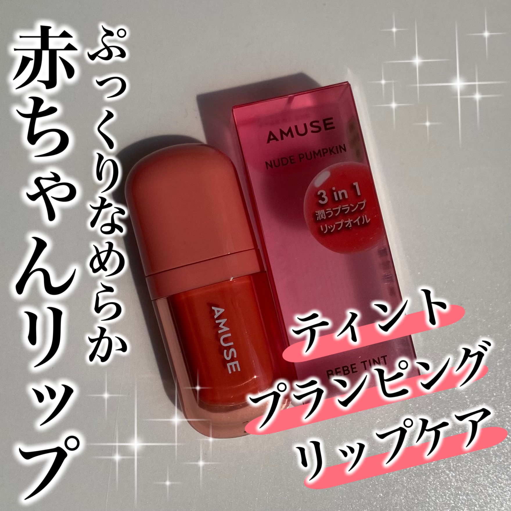 アミューズべべティントはテイント+プランピング+リップケアの3in1水感オイルティント🫧個人的にはプランピング感はほぼ感じなかったのでプランピングをあまり使わない方や苦手な方でも使いやすいと思う👌🏻💓この05ヌードパンプキンは毎日が透明感で染...
