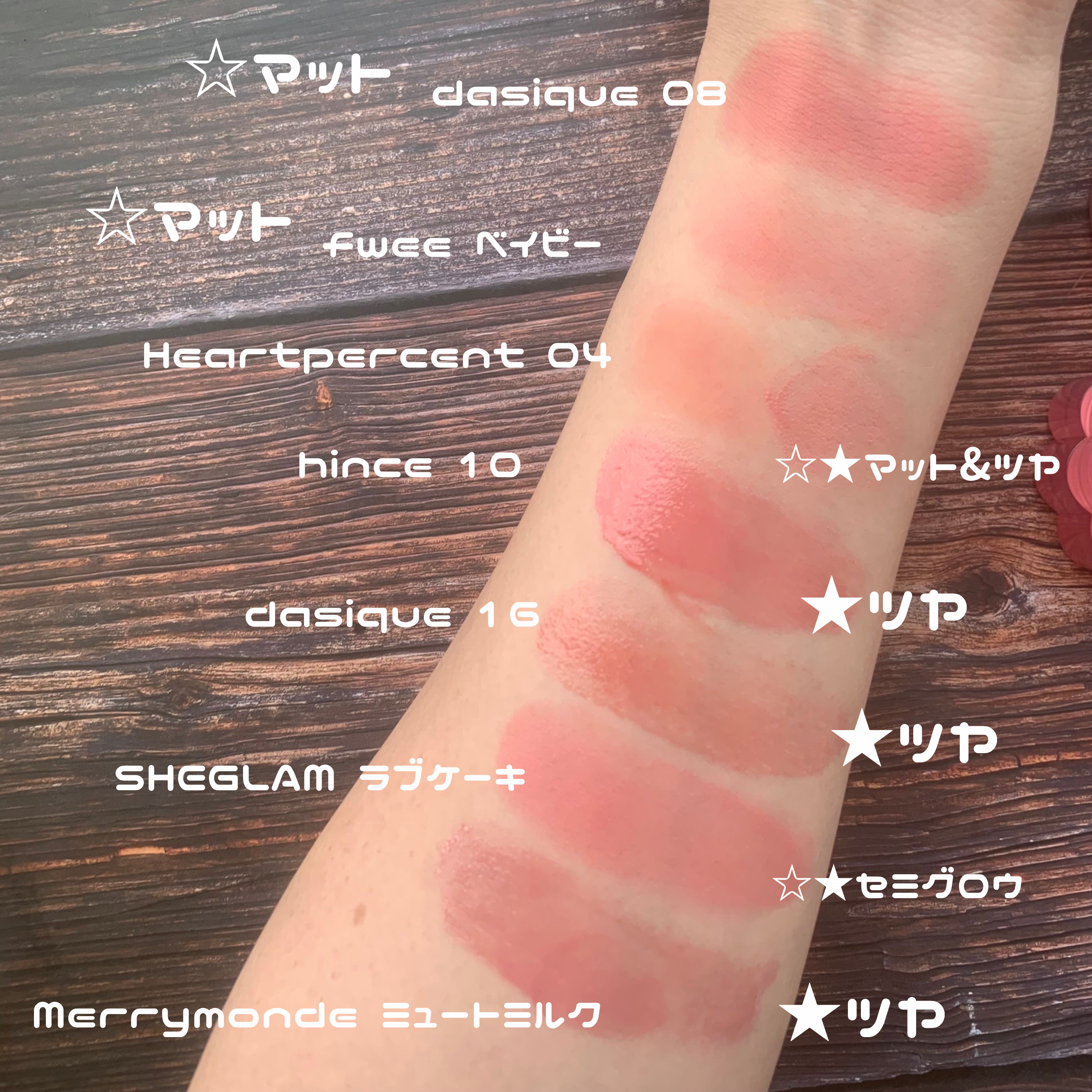 艶タイプもマットタイプも下に塗ったファンデが寄れずにムラなく綺麗に塗れる!!! 艶タイプは体温でとろける感じの質感で、マットはスフレっぽい感じかな! 03のDEAR PINK はイエベ春とブルベ夏にまたがる人に良さそう。リップとして使うのもかわいいけど、個人的にはチークに使うのにどハマりしてます💗 07のGEEK&PIUM はブルベ冬的に大歓喜!!!濃いカラーなのに色むらになりにくく、発色もしっかりしてくれるので大好きです。