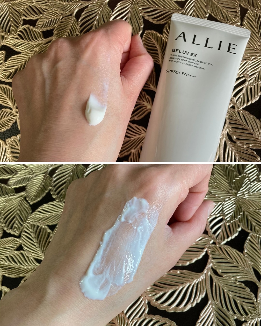 ALLIE様のプロモーションに参加中アリィージェルUVを使ってみました♪汗・水・こすれに強いUVジェルとろっとしたジェル状伸びがよくすっと伸び広がる心地よいテクスチャーべたべたせずに軽やか顔にもボディにもさらっと塗りやすいのが良...