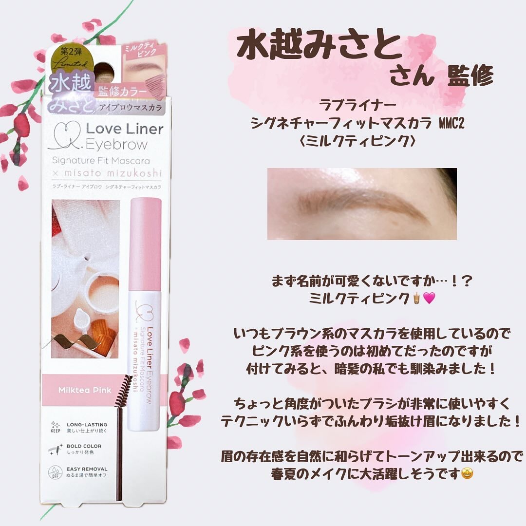 水越みさと監修アイブロウマスカラ第2弾ꉂꉂ📣 第1弾の時からずっと使っててストックもあるけど今回の3種類も可愛すぎた🥰 眉の存在感を和らげるやや明るめのカラーで、どんなメイクにも馴染みやすく使いやすいなと思います😊💭 みさとさん監修カラーなんて間違いなし‼️ 定番になってほしいな〜💭