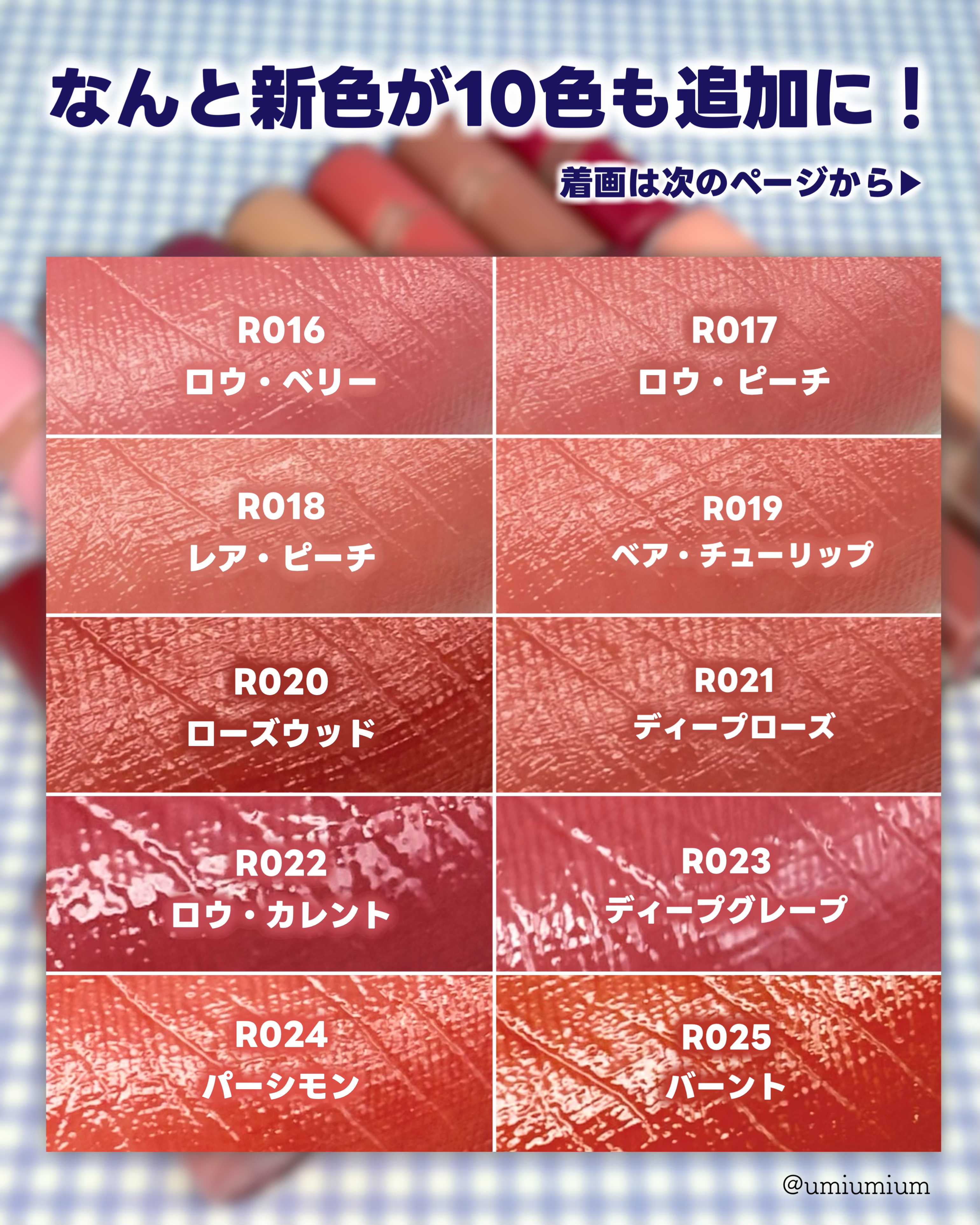 くすんだ落ち着きのあるヌードな新色は どれも肌馴染みがよく使いやすいカラー! 私は12,13はqoo10で、14はロフトで購入! 12はどちらでも売ってましたよ✨ 14は日本限定カラーになります! 可愛すぎる新色!是非チェックしてみてください💕
