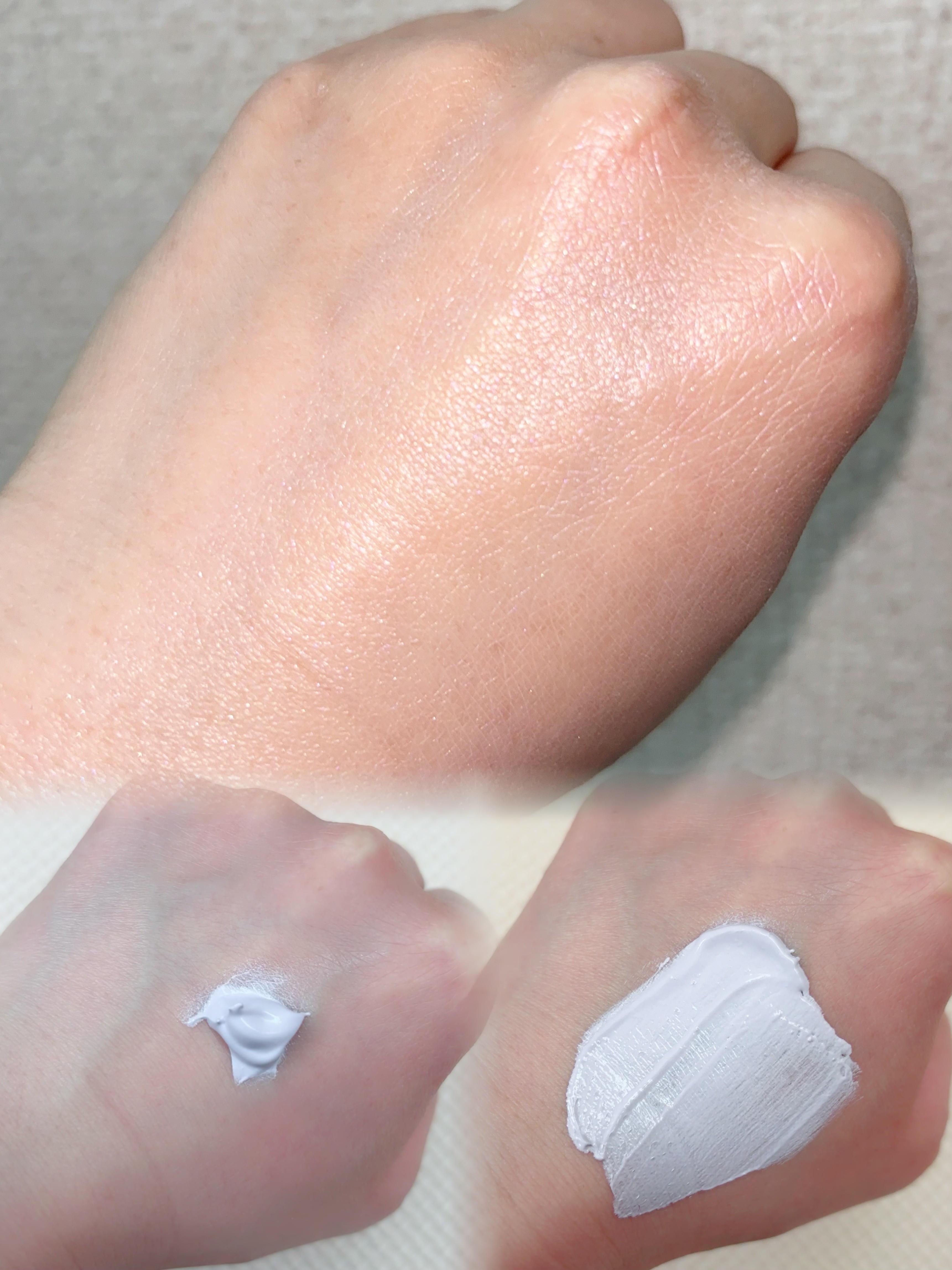 重めなテクスチャーですが、スーっと伸びます! しっとりとした使い心地で、私は手にも使ったりしています☺︎ 日中の乾燥が気になったときにメイクの上からも使えます! メイクの上から使うときは、手のひらでよく伸ばしてから使うと白くなりにくかったです😊 香りもないので使いやすく感じました❣️